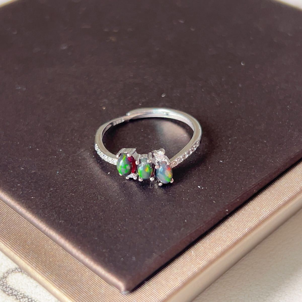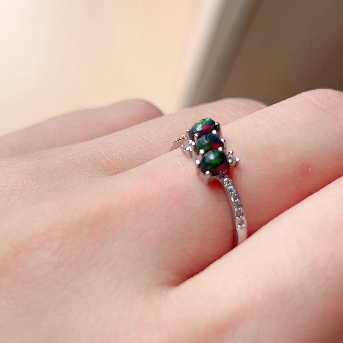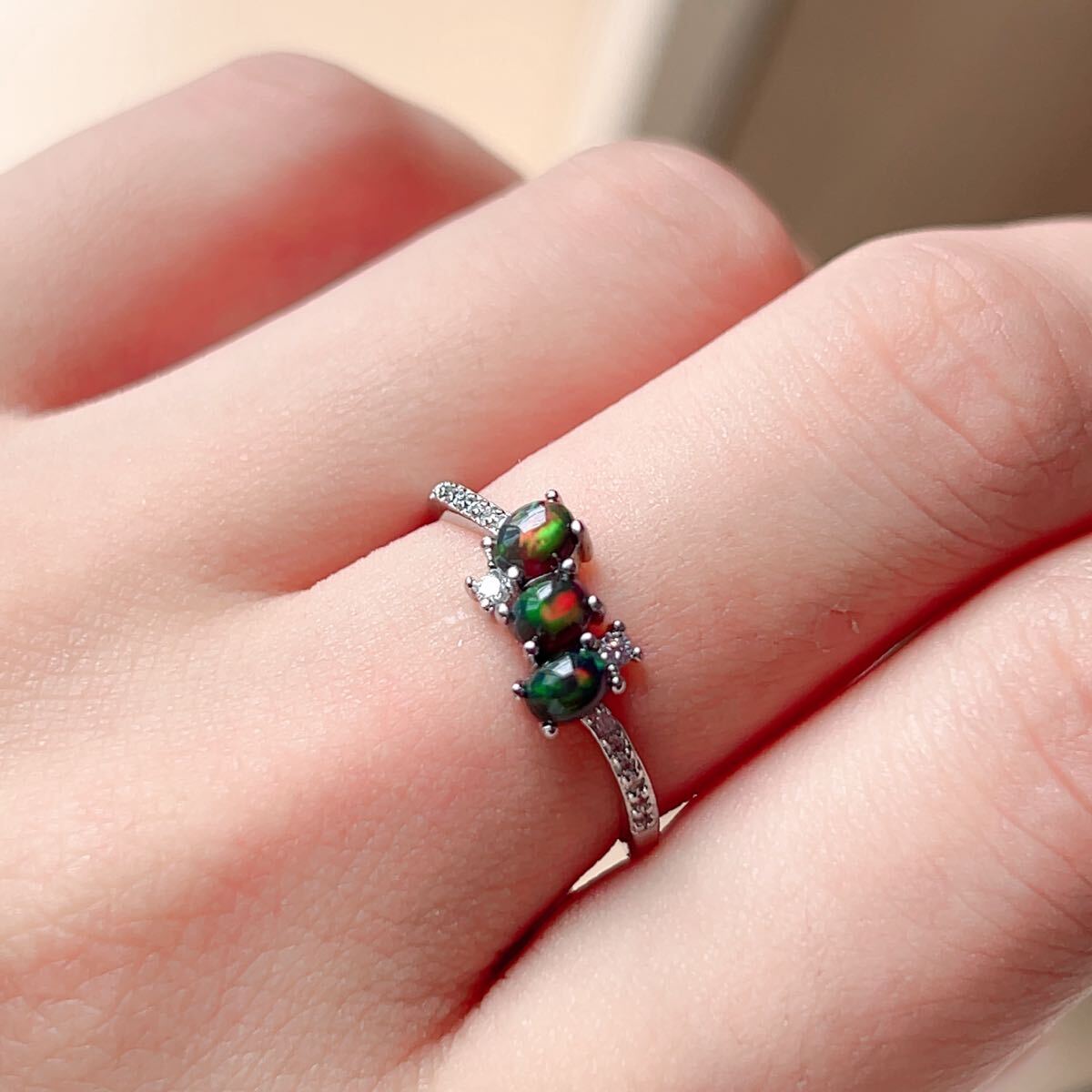 ◇ブラックオパール(Opal)◇ 遊色効果 が強め◇ キラキラ◇指輪◇パワーストーン◇天然石◇巾着袋付き◇プレゼントに040R9413