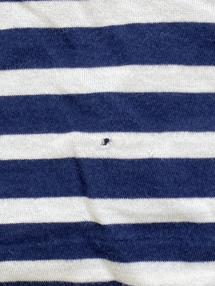 フロント下方に3㎜程の小穴、背中裾にシミ箇所があります