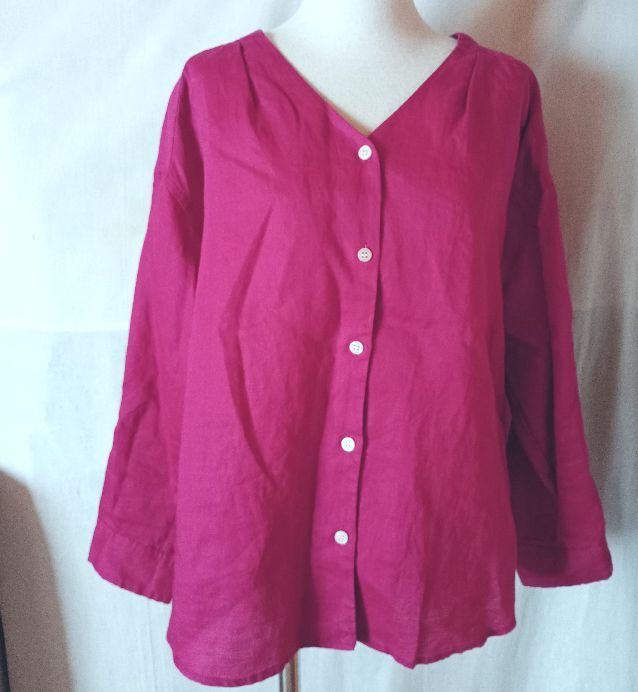 SIMPLICITE シンプリシテェ リネン Vネックブラウス 麻 ラミー ピンク サイズF フリーサイズ