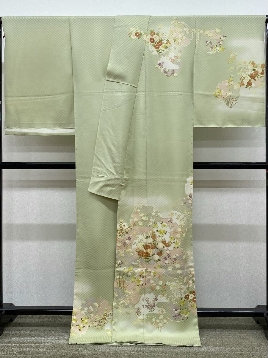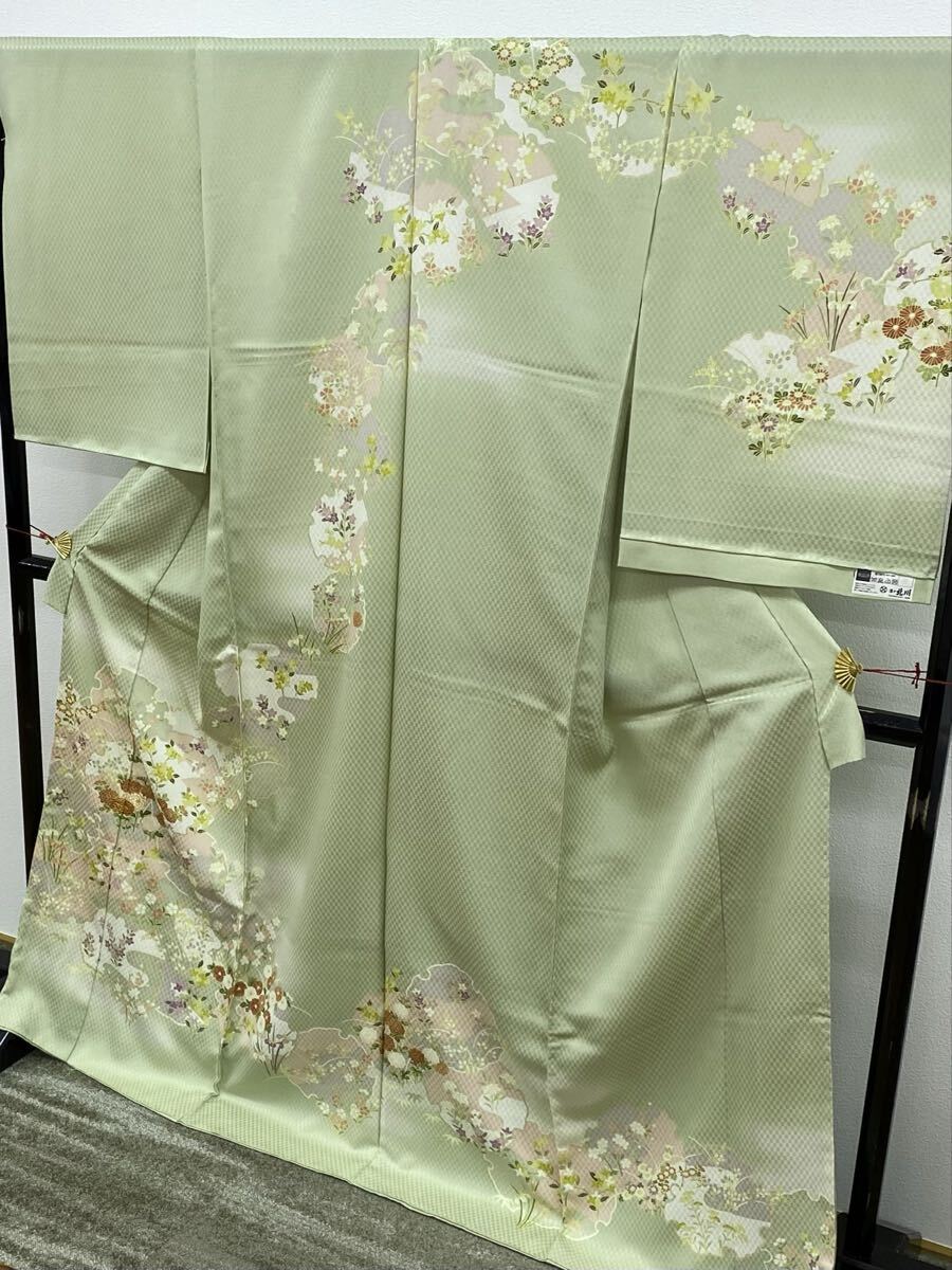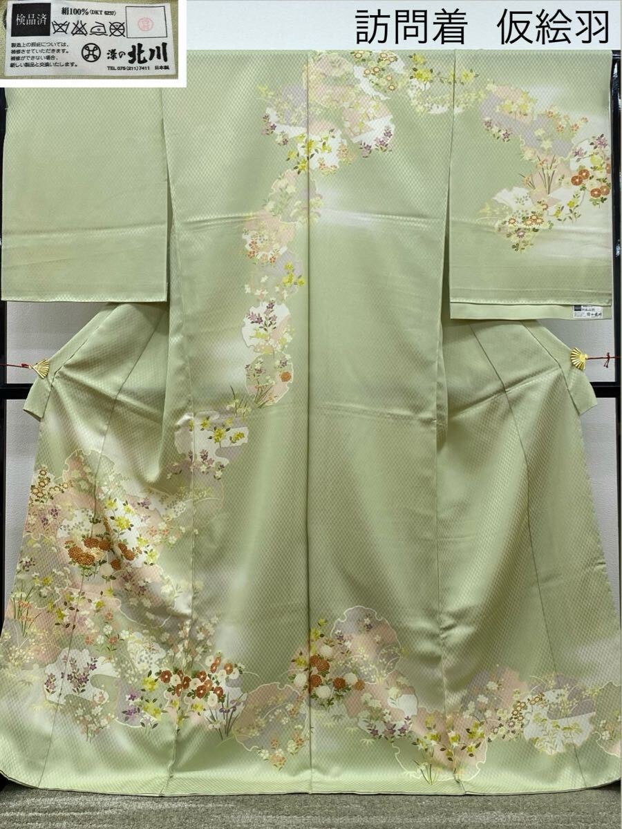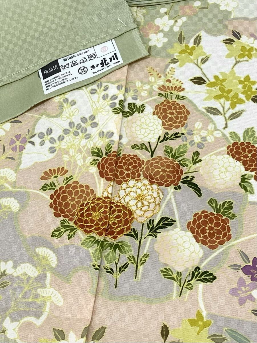 染の北川 手描き友禅 訪問着 仮絵羽 未仕立て品 金駒 雪輪に花々 正絹