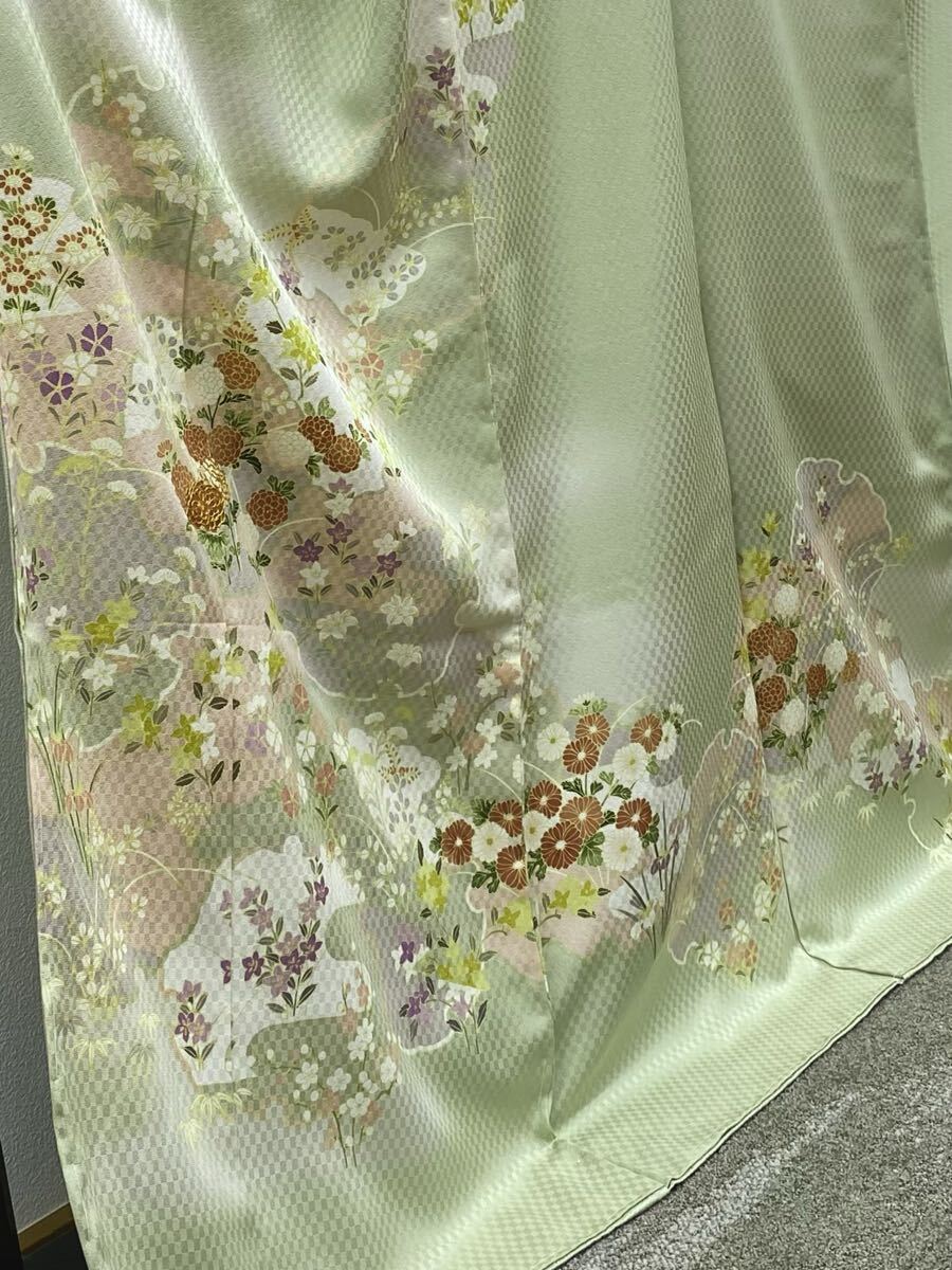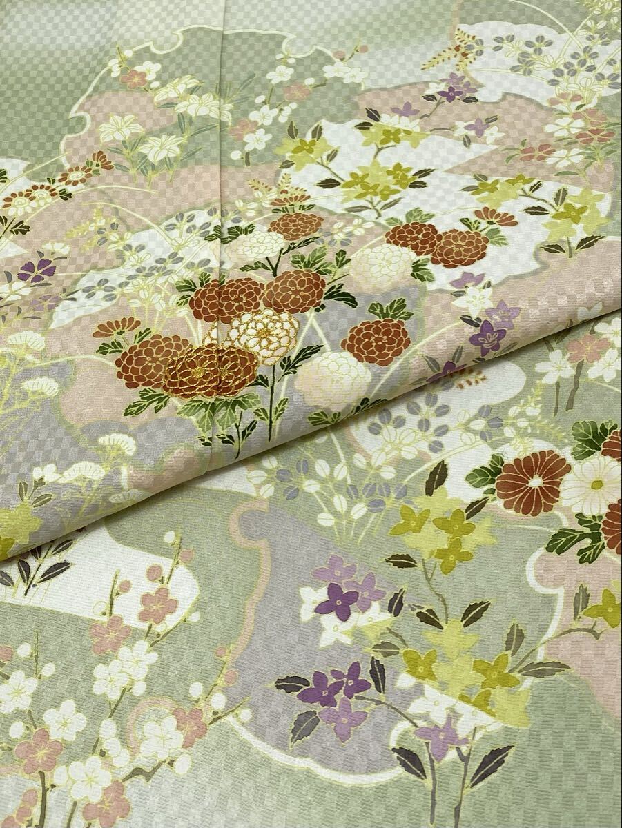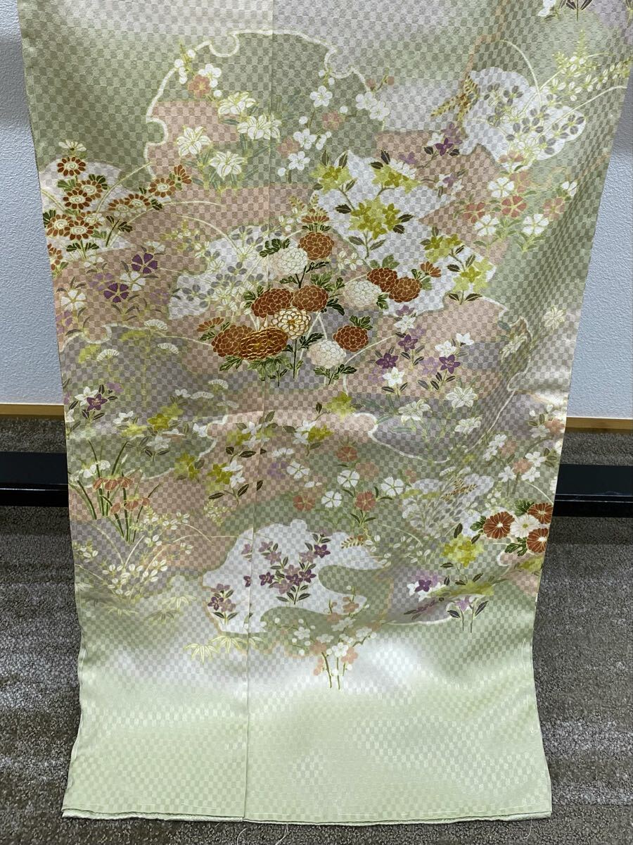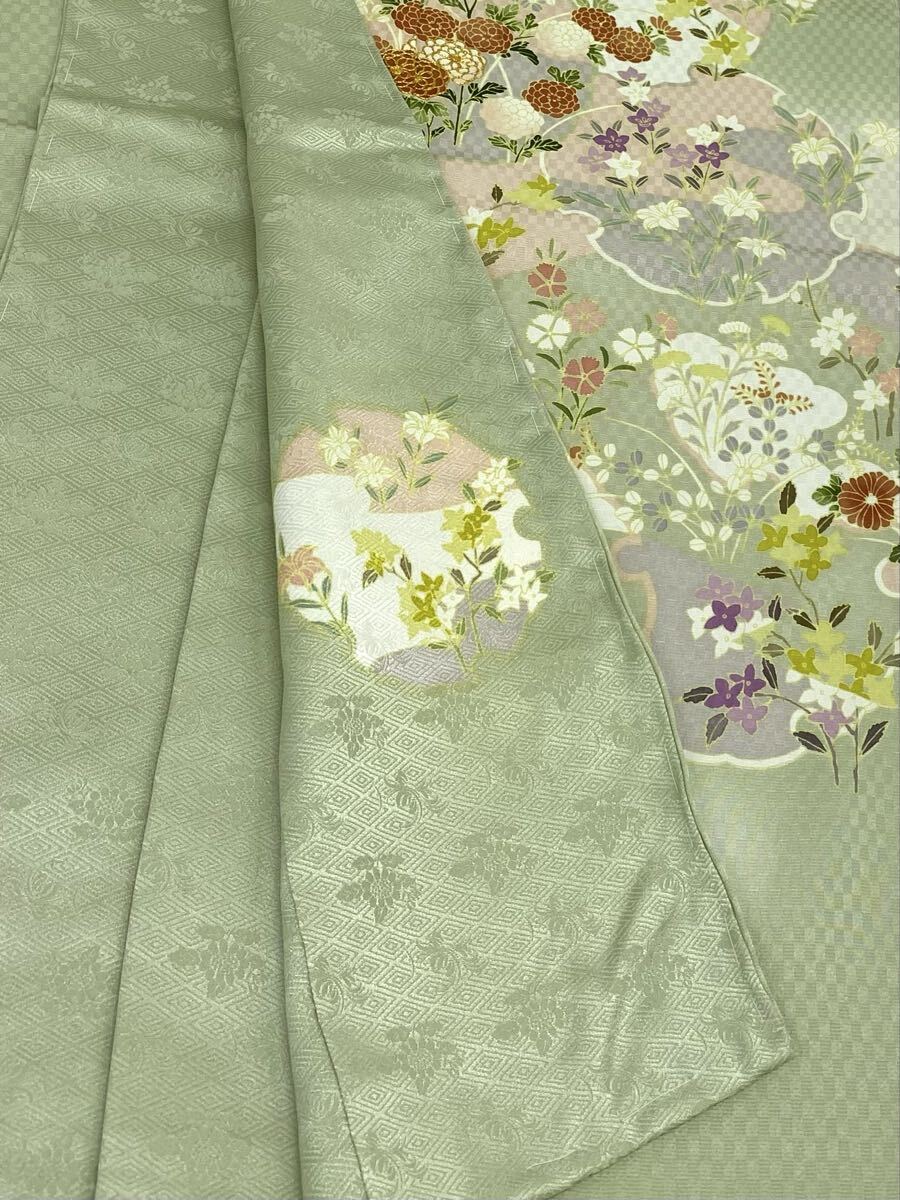 染の北川 手描き友禅 訪問着 仮絵羽 未仕立て品 金駒 雪輪に花々 正絹