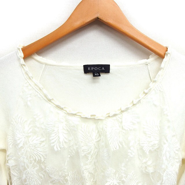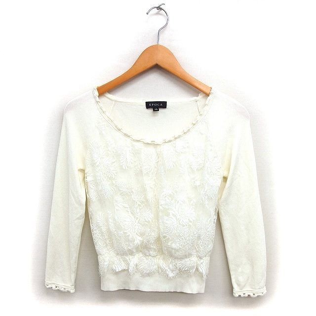 エポカ EPOCA レース ニット セーター ラグランスリーブ クロップド リブ 長袖 40 オフホワイト /NT5 レディース