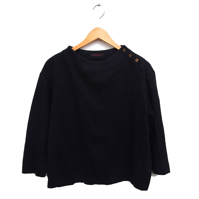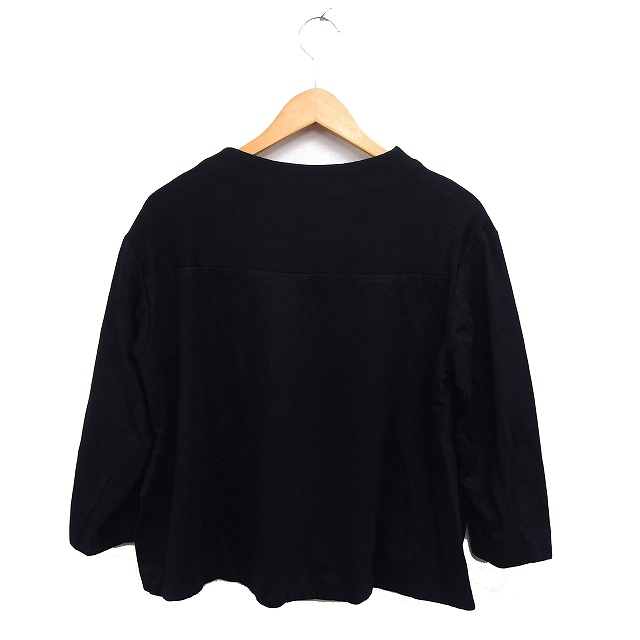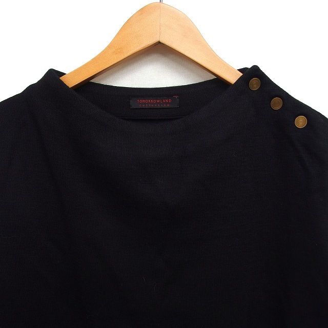 トゥモローランドコレクション TOMORROWLAND collection ビルドネック カットソー スリット ウール混 コットン混 長袖 36 黒 ブラック