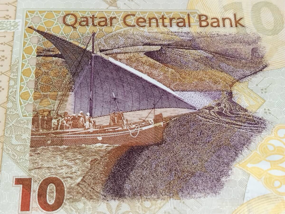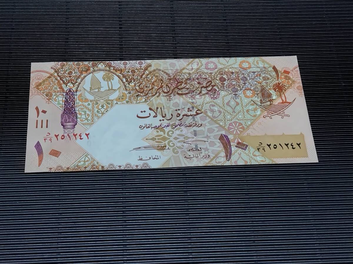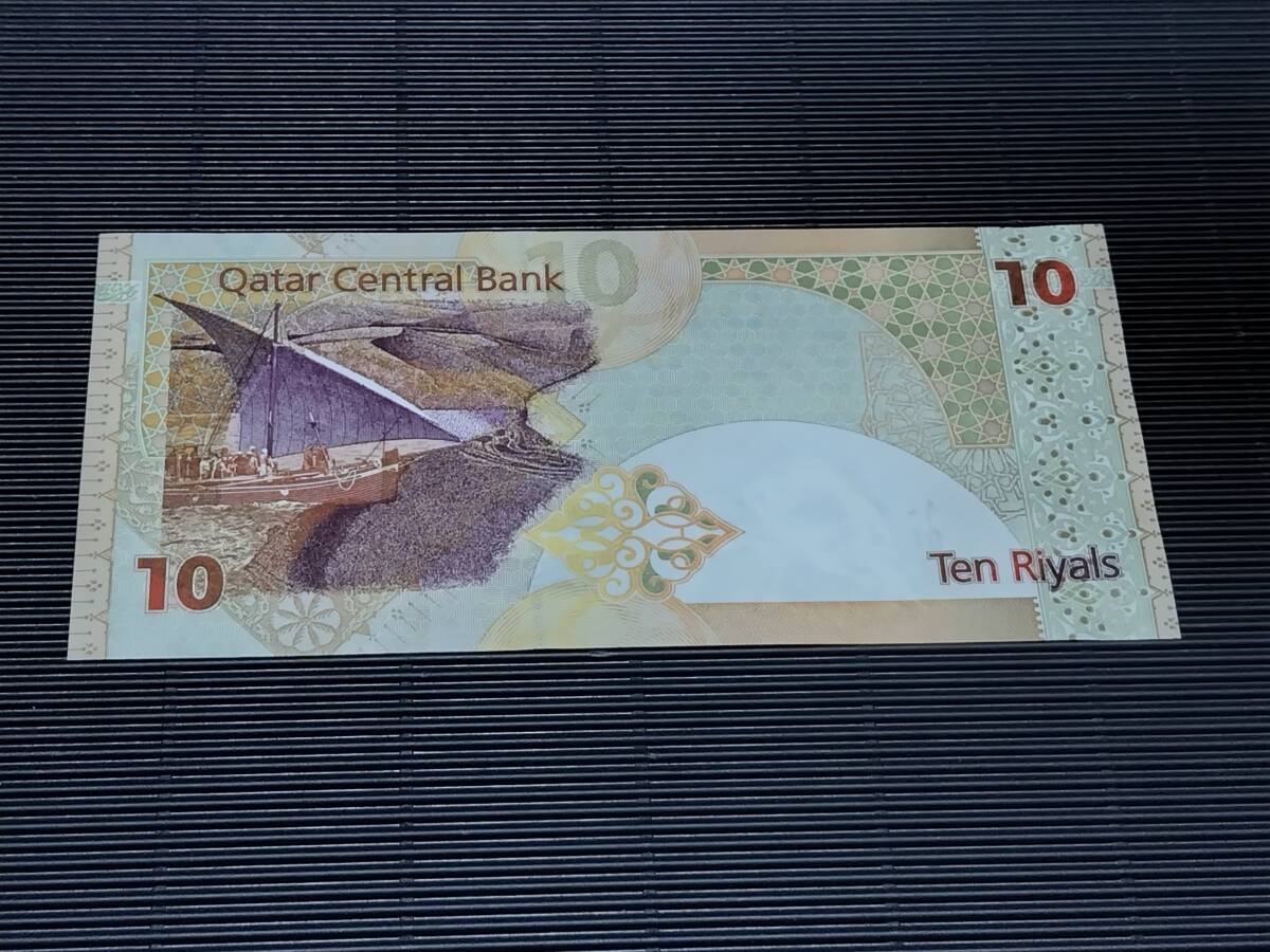 カタール 10 Riyals札 コレクション向きのピン札 発行年未記載(実際の発行は2008年) 未使用~甘い未使用 船 p-30(1) #/39 251244