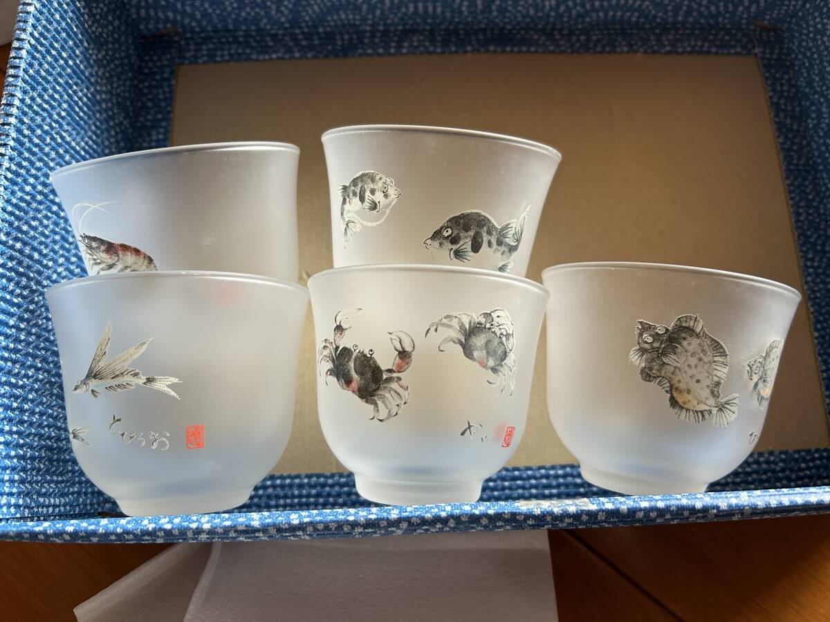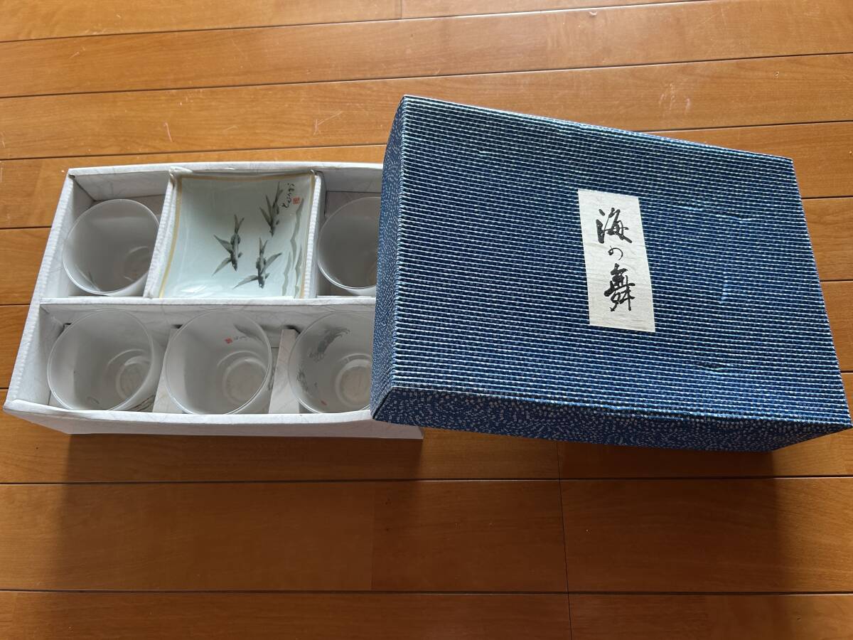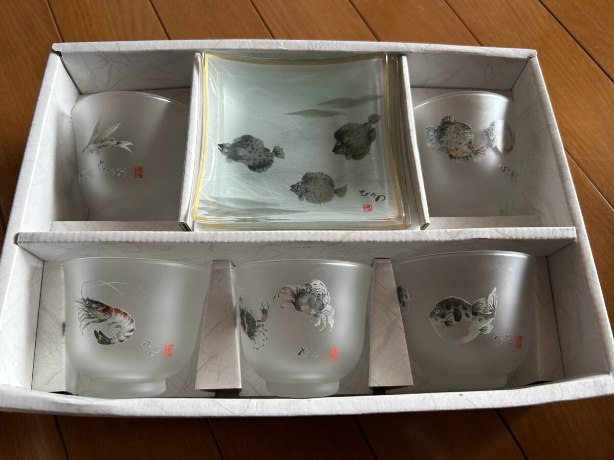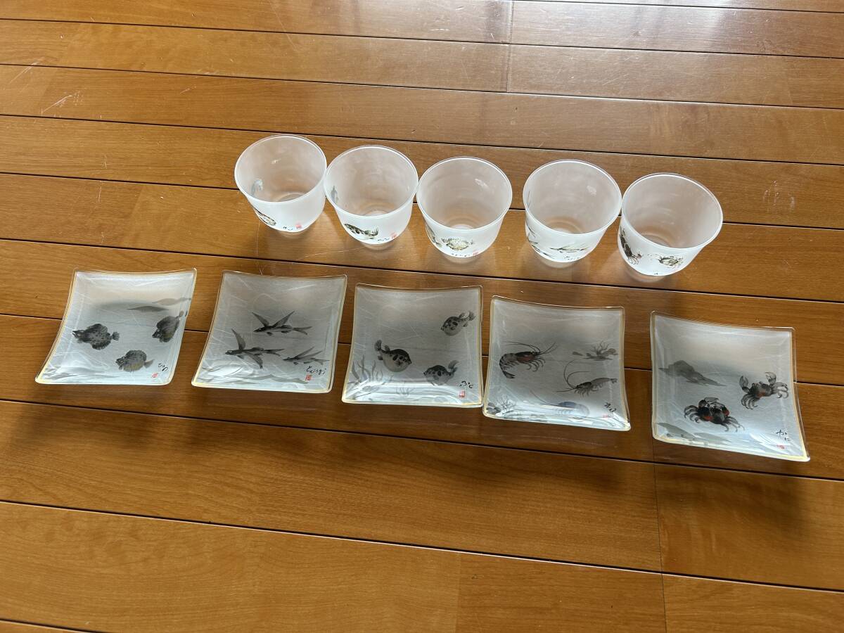 ☆海の舞 小皿付冷茶セット 佐々木硝子 日本製 ジャンク☆