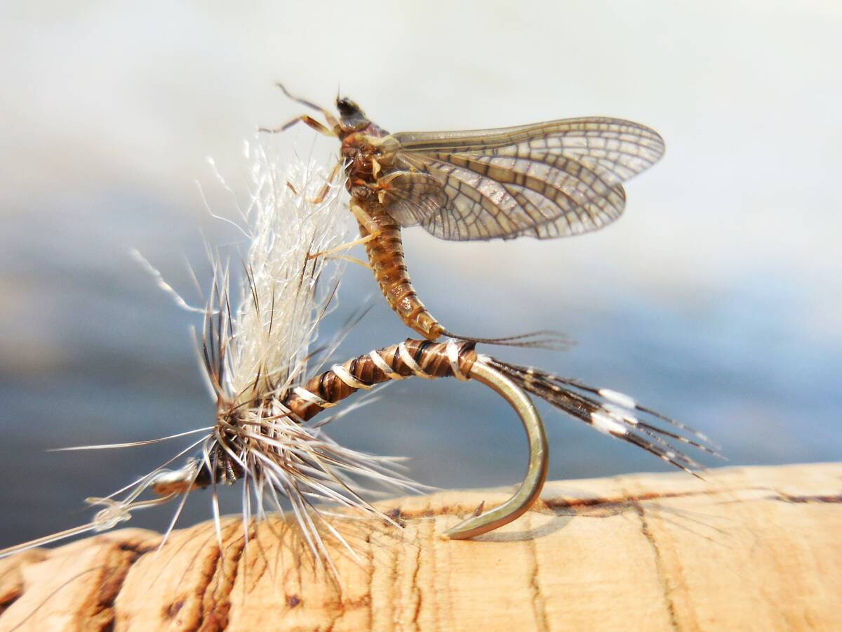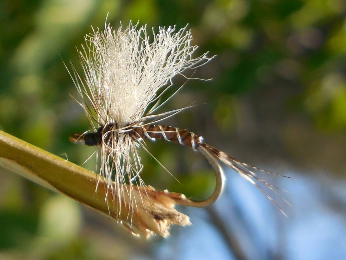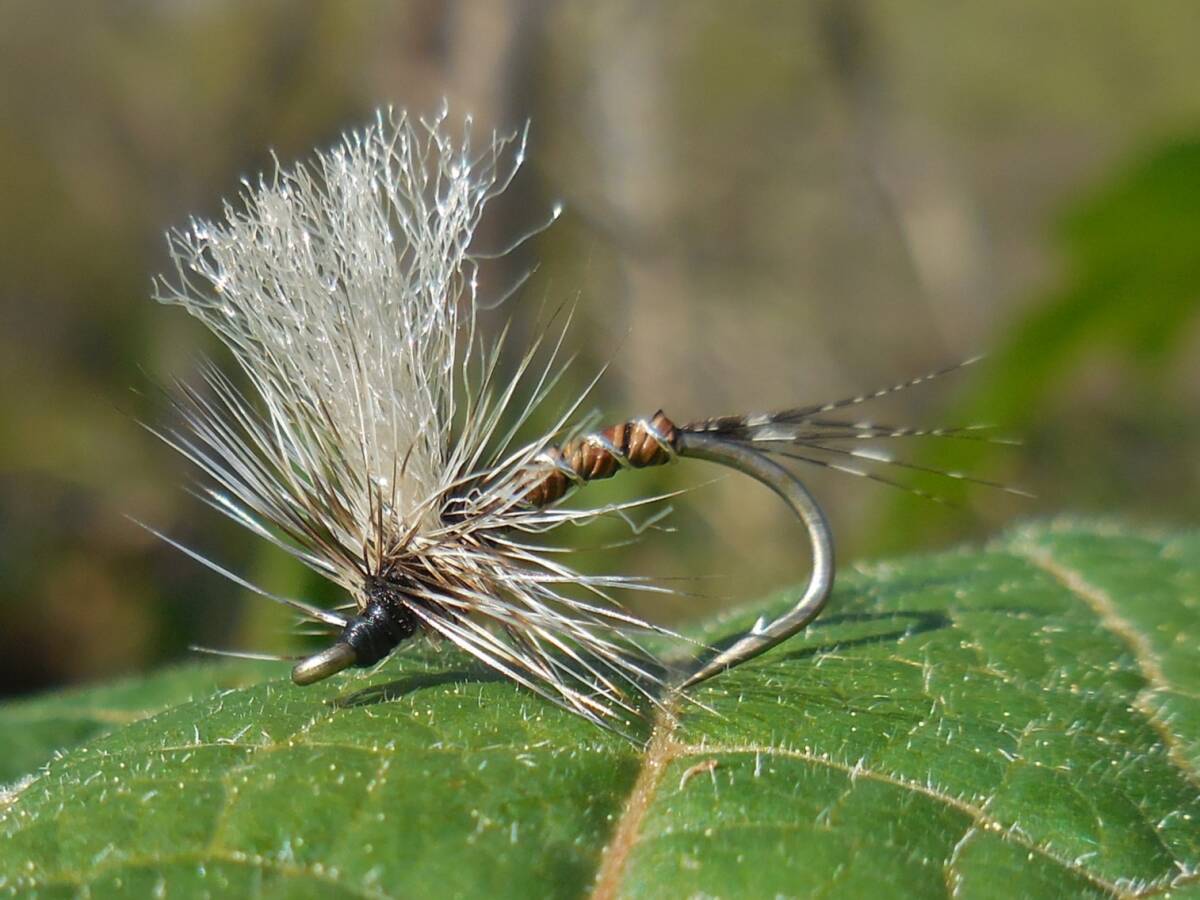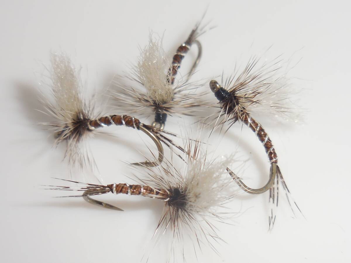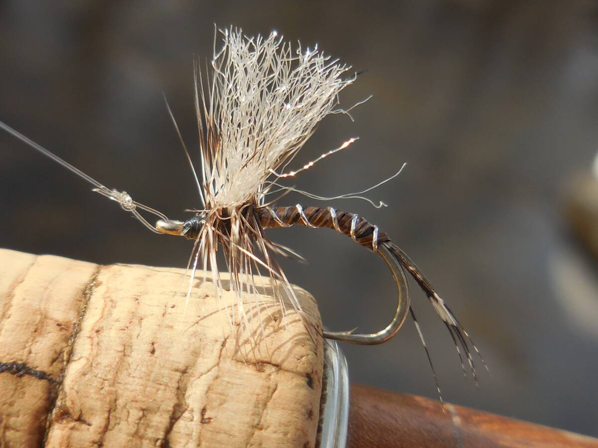 渓流で見られる多くのマダラカゲロウ類に対応した色合いで仕上げてみました。普段制作するドライはパラシュートかカディスタイプがほとんどですが、久し振りに違うタイプにしてみました。ハックルの下部はカットしていますので、キャスティングで時の回転を抑え、ティペットのヨレを幾分軽減できるかと思います。