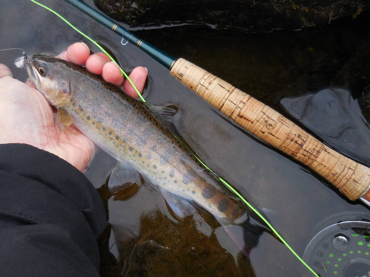 連日降り続いた雪も収まり、本日は気温もプラスで暖かくドライでいけそうな予感が。ユスリカがわずかに飛んでおり、フラットな流れを狙っての釣りとなりました。ニジマス、ヤマメ、アメマスと3種類が掛かり、計7匹とシーズン最後のドライの釣りを楽しむことができました。