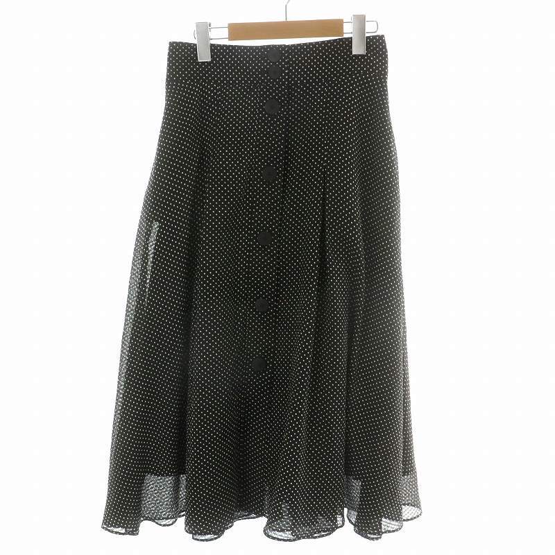ロペ ROPE フレアスカート ギャザースカート ロング 水玉 総柄 総裏地 36 S 黒 ブラック 白 ホワイト GWC-48480-B /MP ■GY19