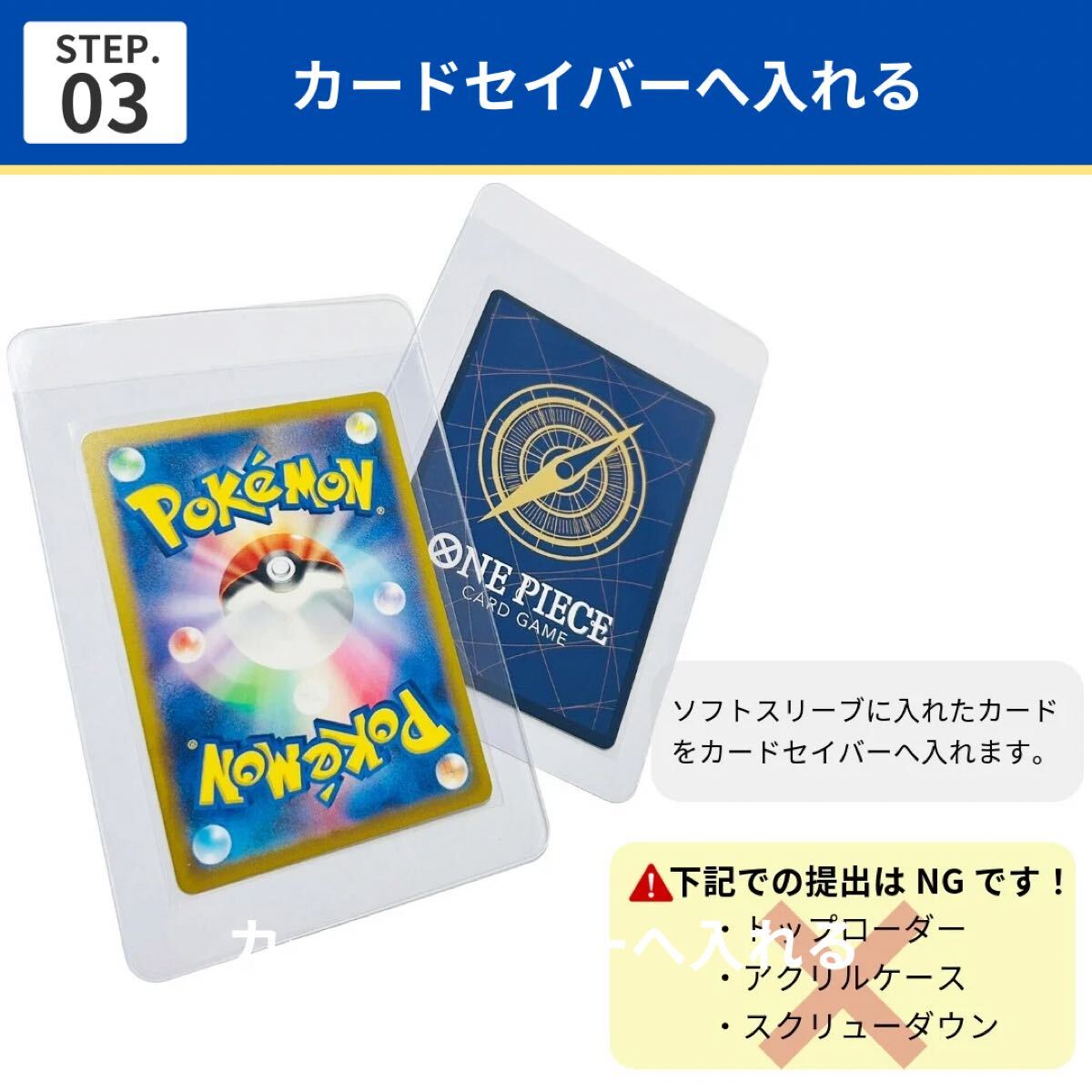 PSA鑑定に必要なカードセイバーや資材をセットにしました。発送用ダンボール(メール便サイズ)も付属しているので、オンライン申込みを済ませたら、あとは送るだけです!
