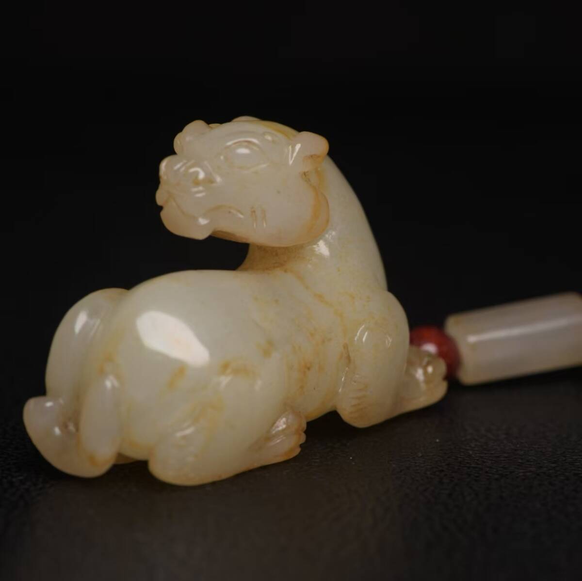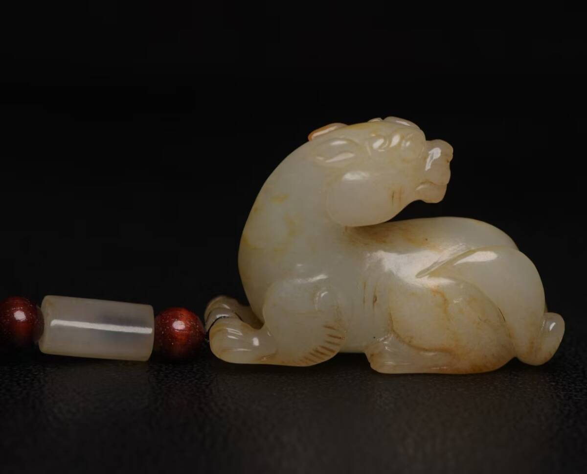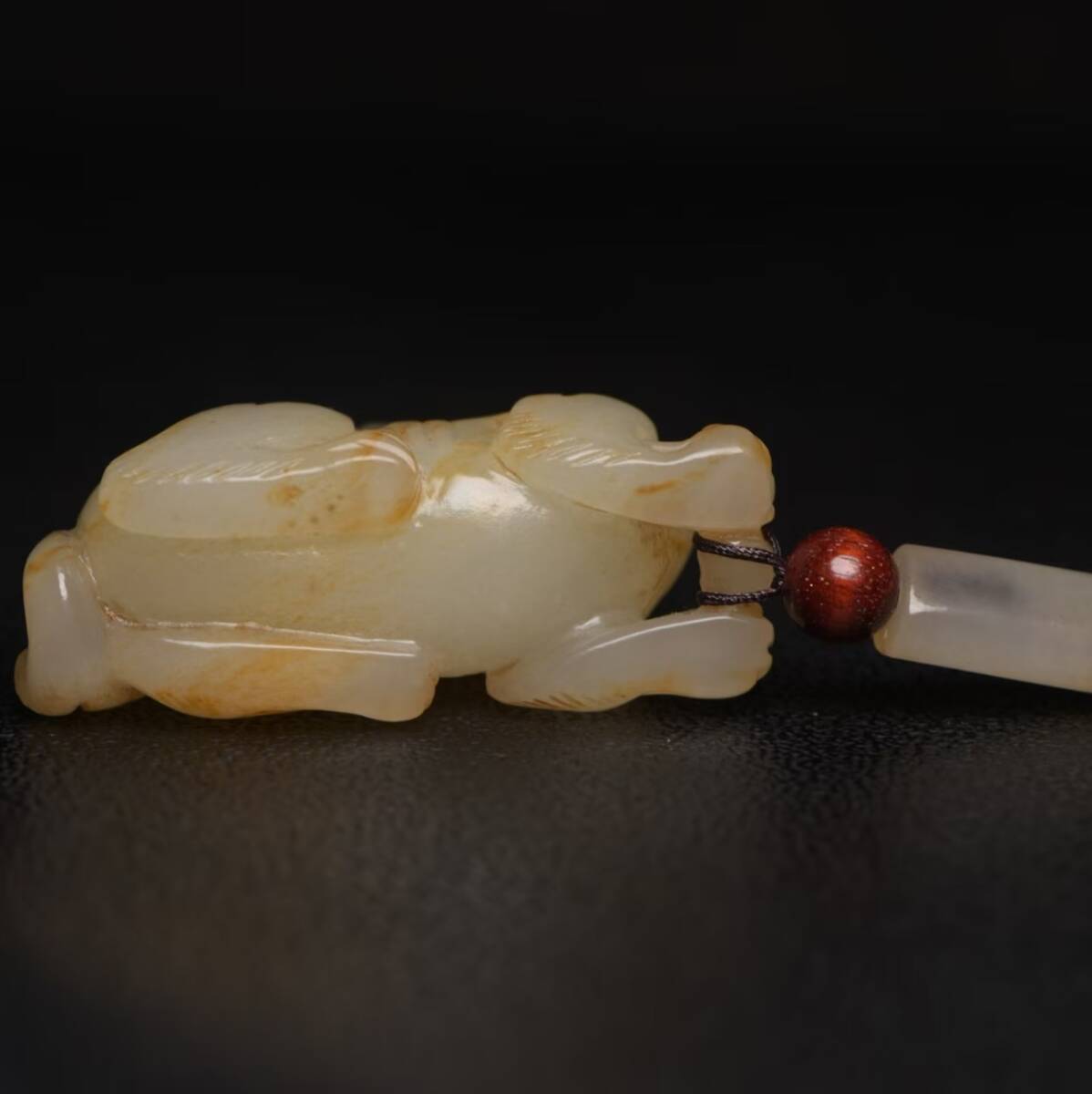 白玉 老玉 秘藏 清代 和田玉瑞獣貔貅・聚富神獣玉佩 唐物 古玉彫 天然石 稀少珍品 古美術 古賞物 古置物 旧蔵 901