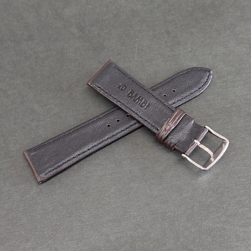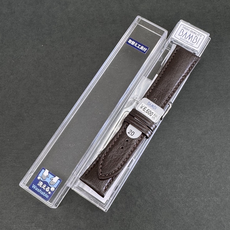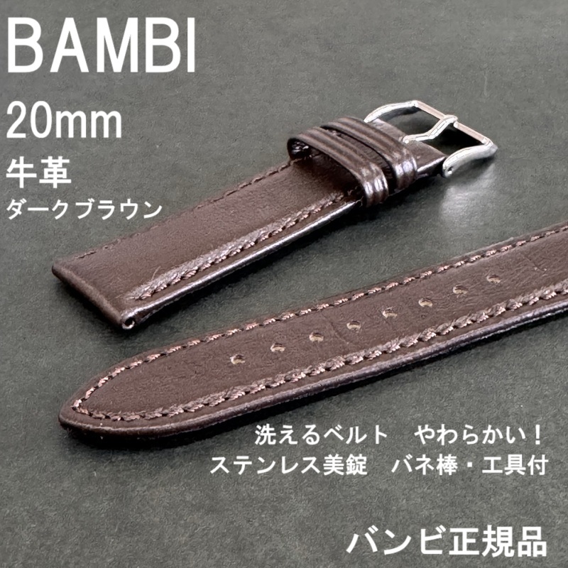 送料無料 バネ棒付き★特価 新品★BAMBI 時計バンド 20mm 牛革ベルト ダークブラウン こげ茶色 柔らかい!★バンビ正規品 定価税込6,600円