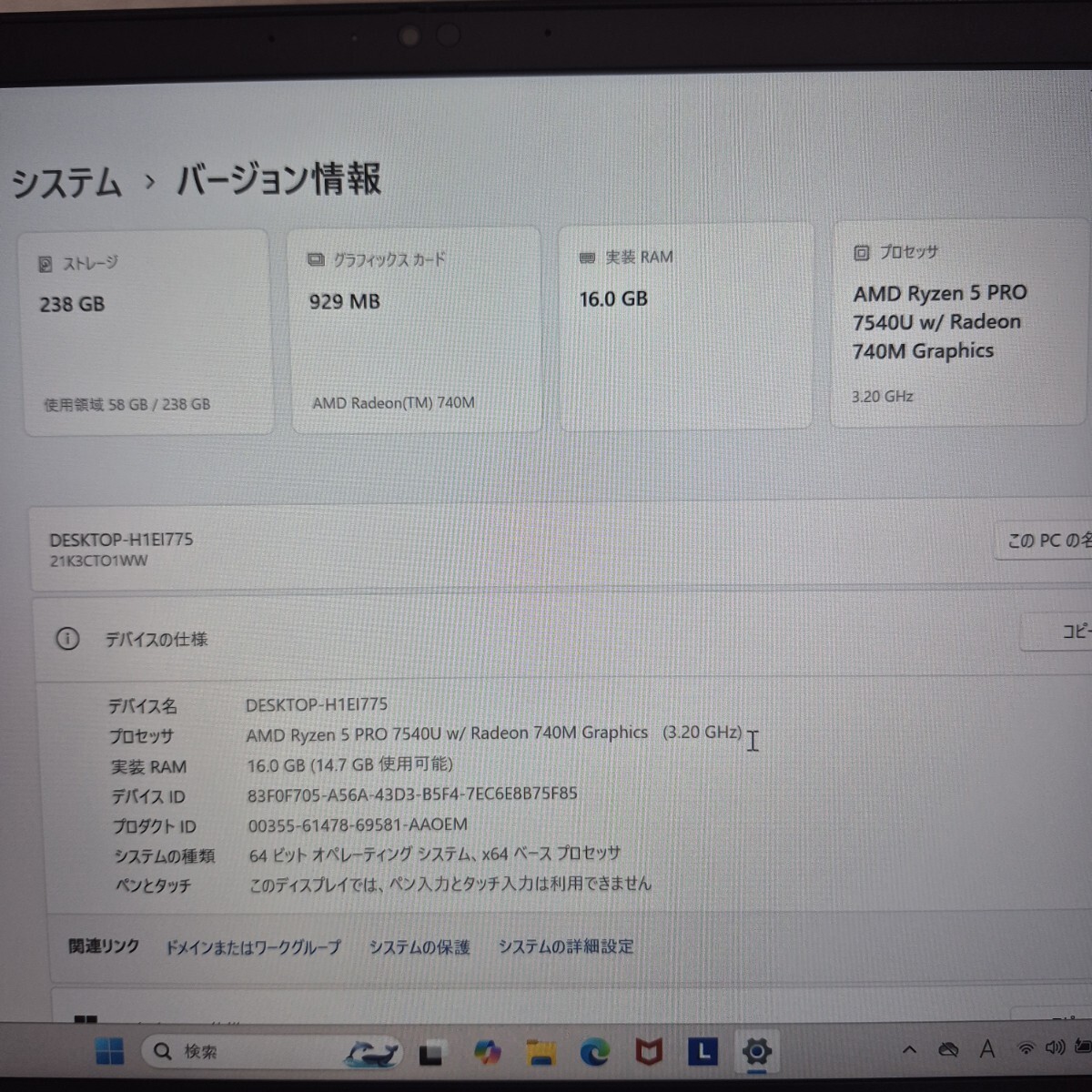 2024年製、世代の新しいZen 4搭載なので日常のオフィス使用等には十分な性能です。