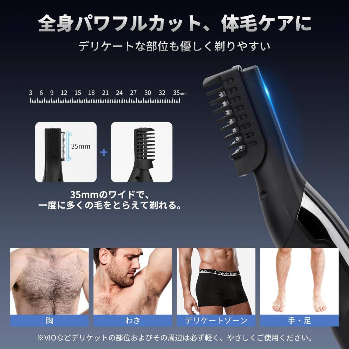 Beedove ボディシェーバー vio シェーバー メンズ 1~12mm長さ調整「6ヘッド&2調節可モード&収納ベース付き」むだげ処理 シェーバー