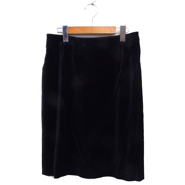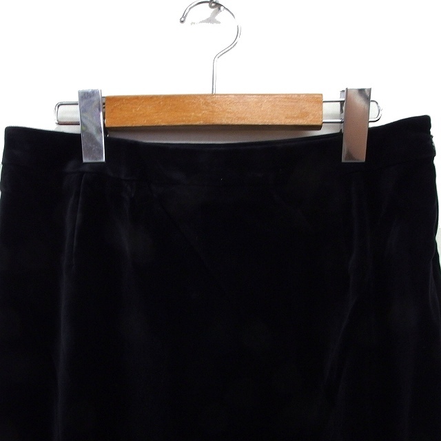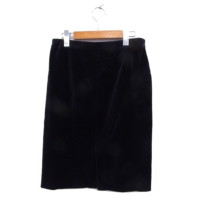 エムケー ミッシェルクラン MK MICHEL KLEIN ベロア タイト スリット スカート ひざ下 コットン混 サイドジップ 40 黒 ブラック