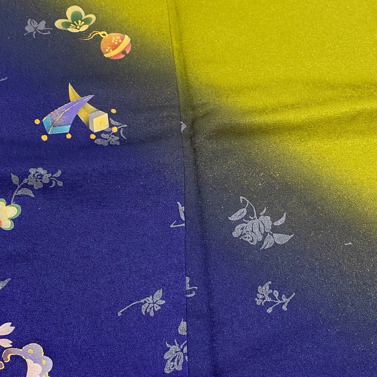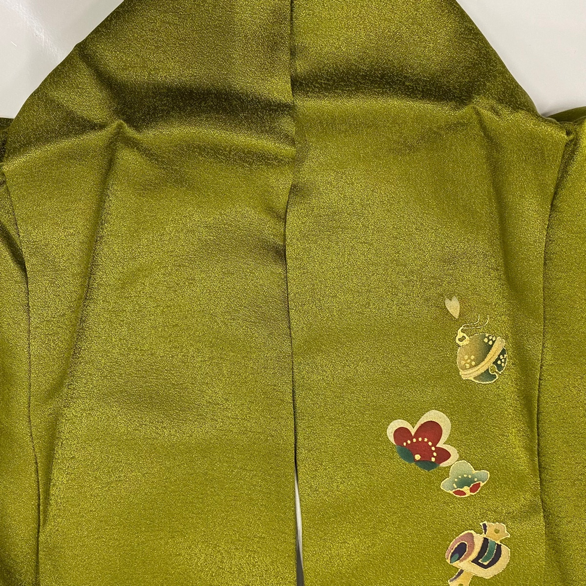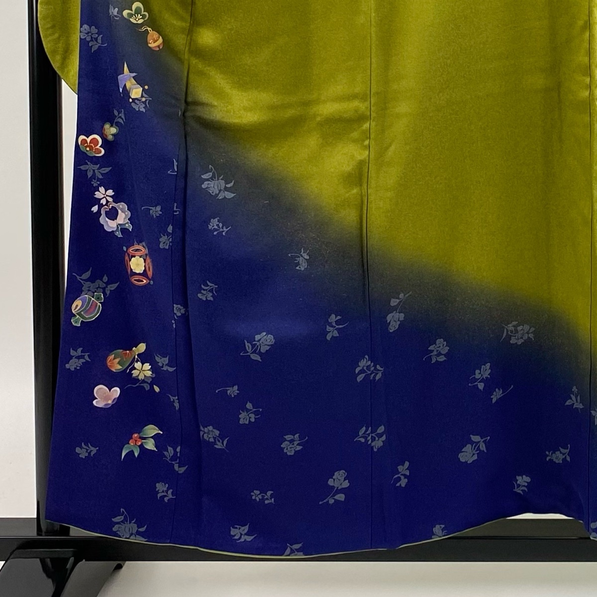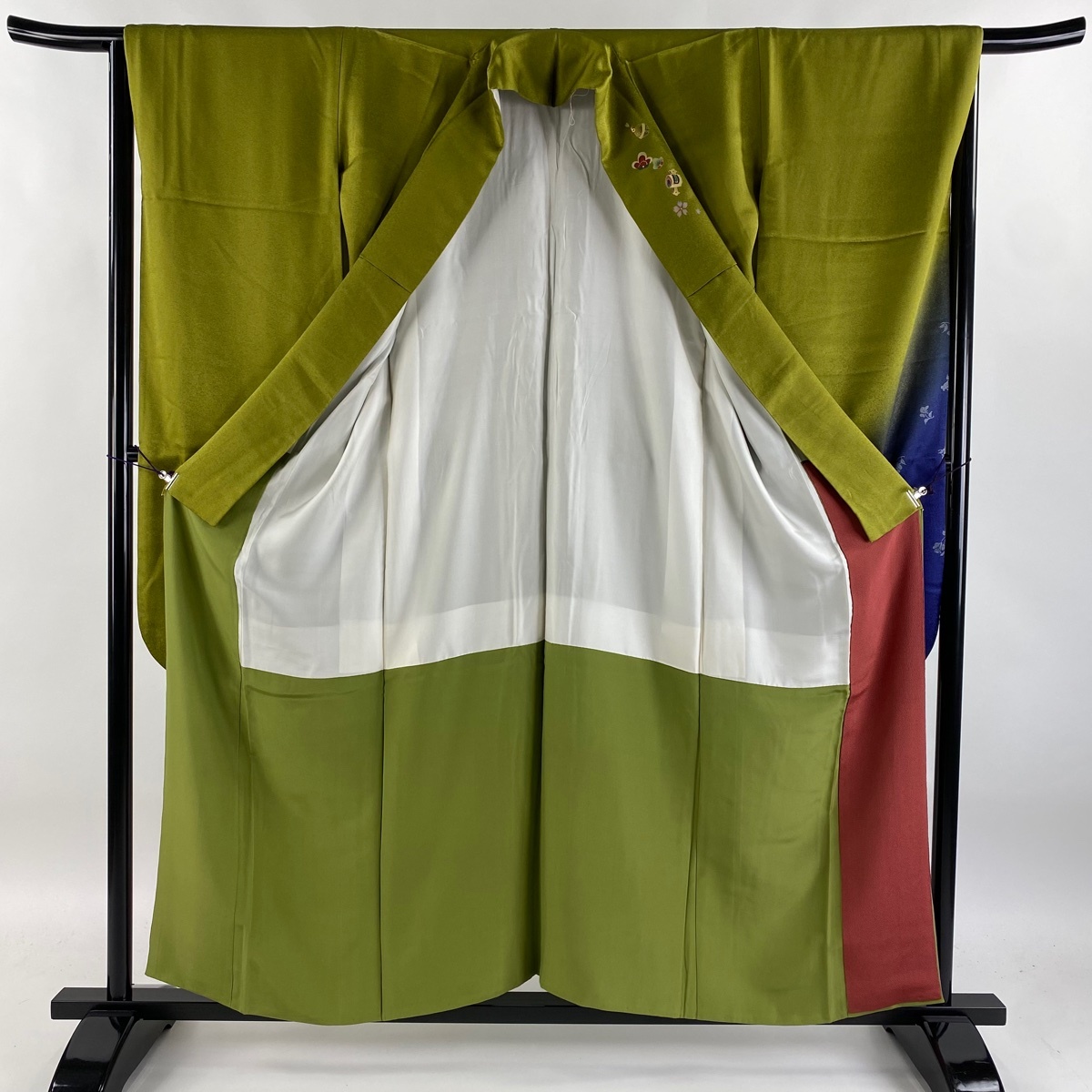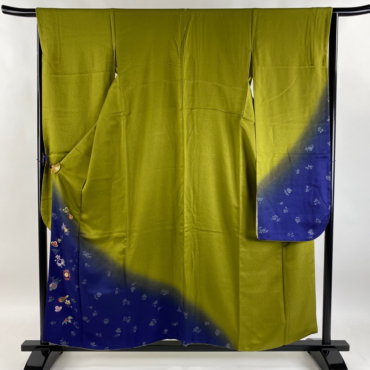 | 振袖 美品 秀品 落款 宝尽くし 草花 金彩 染め分け 鶯色 袷 身丈158.5 裄丈62 S 正絹 【中古】 |