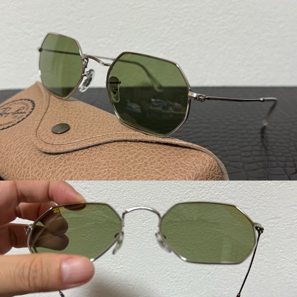 レイバン rayban 未使用 サングラス rb3556 オクタゴナルシェイプ シルバー グリーン サイズ53