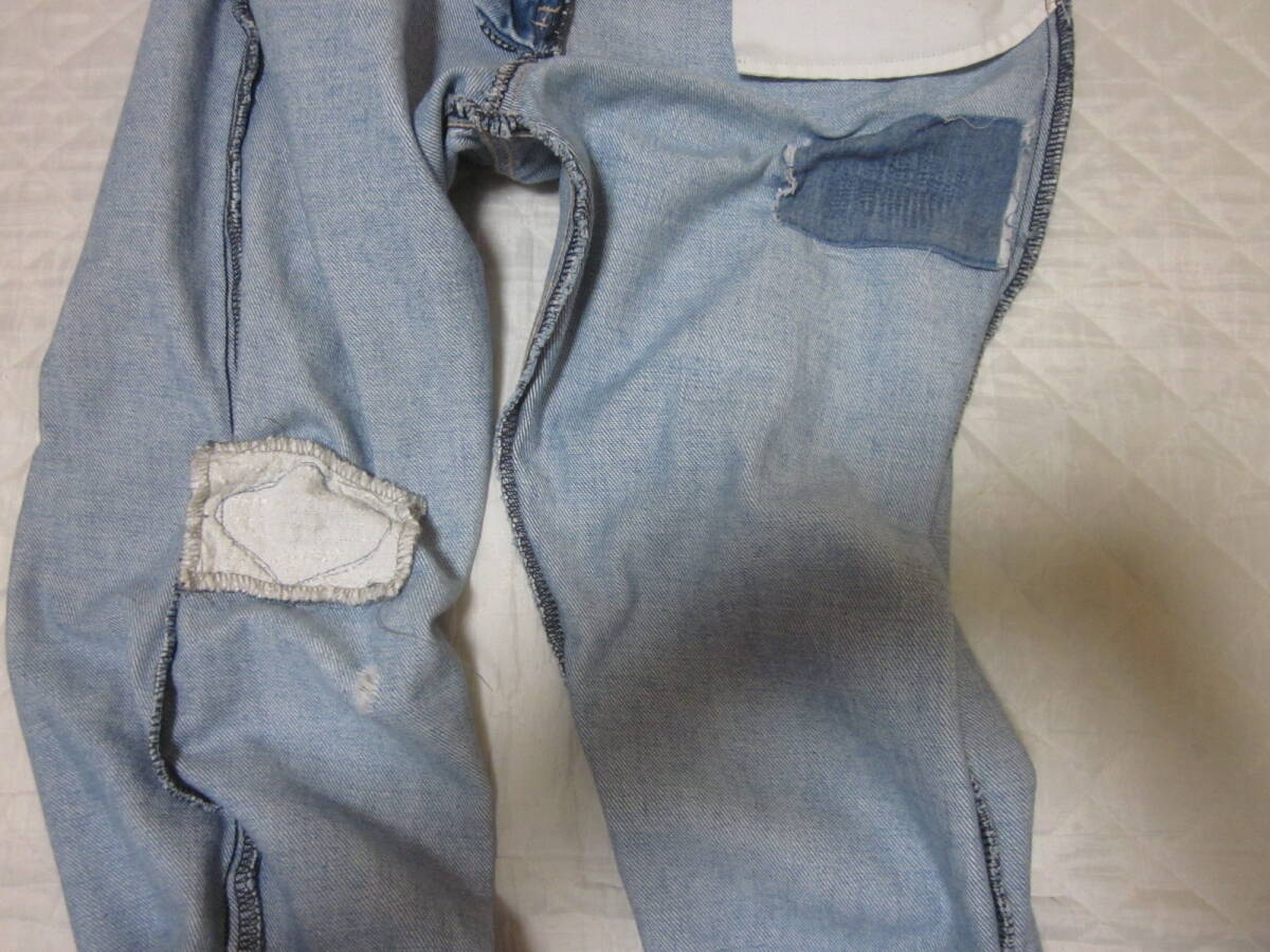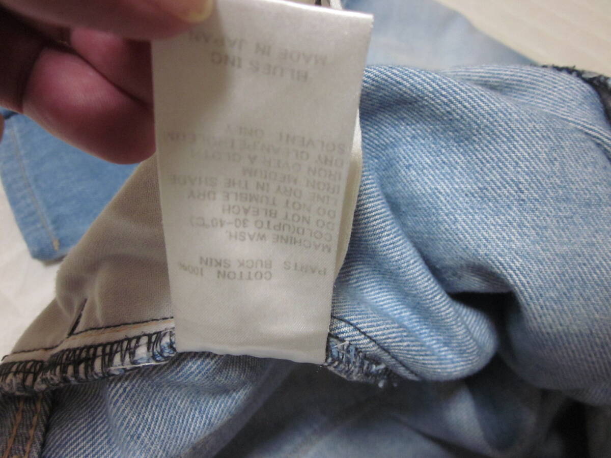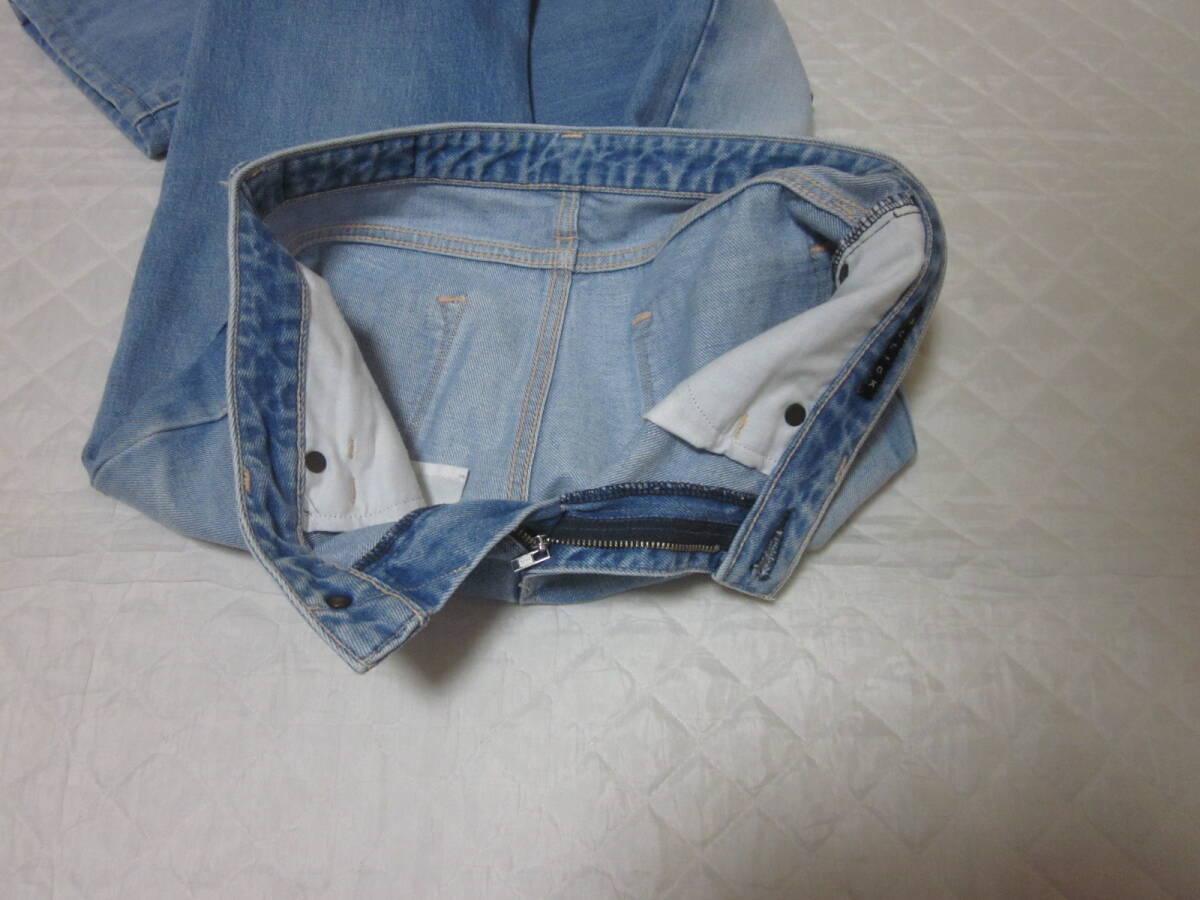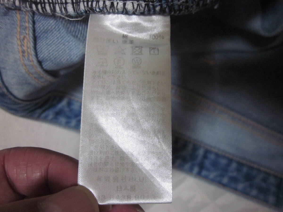 ・ウエストサイズ表示はレディスサイズのMですが実寸:約75~76CMぐらいです。素材はコットン100%です。MADE IN JAPAN製です。革ラベル仕様です。フロントジップ仕様です。フロント左右に充て布リペア加工デザイン(純正オリジナル)が演出されています。
