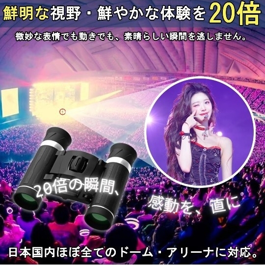 双眼鏡 ライブ用 ドーム&超軽量&コンパクト:オペラグラスは片手で持ちやすいコンパクトなデザインで、本体重量が210g、手持ちはiPhone16より軽くて 。長時間使用しても疲れません。コンパクトでカバンや首掛けて持ち歩いても邪魔になりません。折りたたむとさらにコンパクトになり、バッグに楽々収納できます。お子様や女性に最適。コンサートやスポーツ観戦、ライブ、オペラ、観劇、野鳥観察などに最適です。