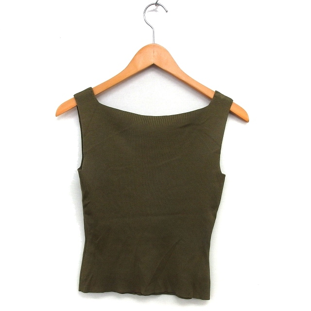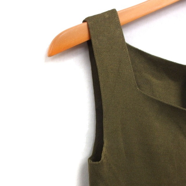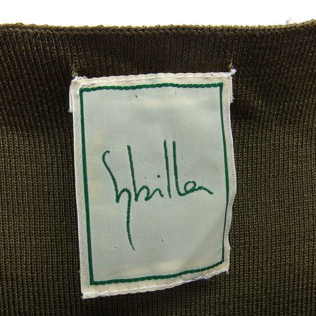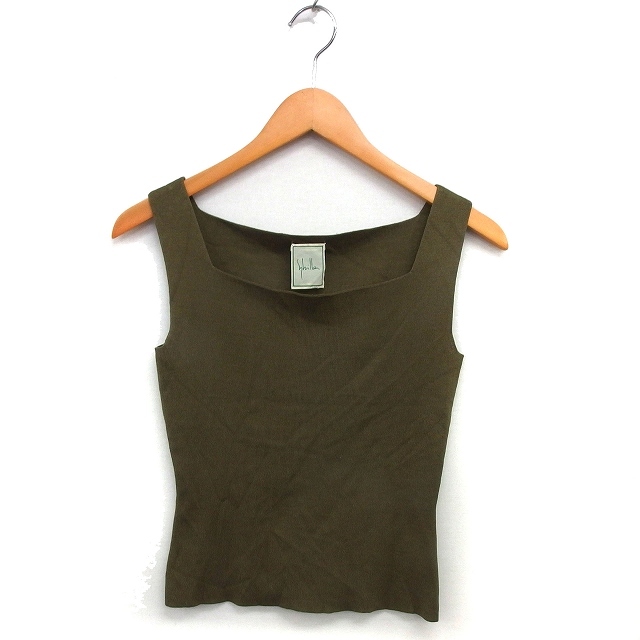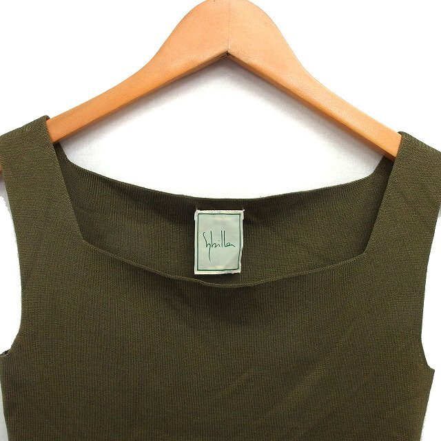 シビラ SYBILLA ニット タンクトップ クロップド シルク スクエアネック 無地 M カーキ /NT34 レディース
