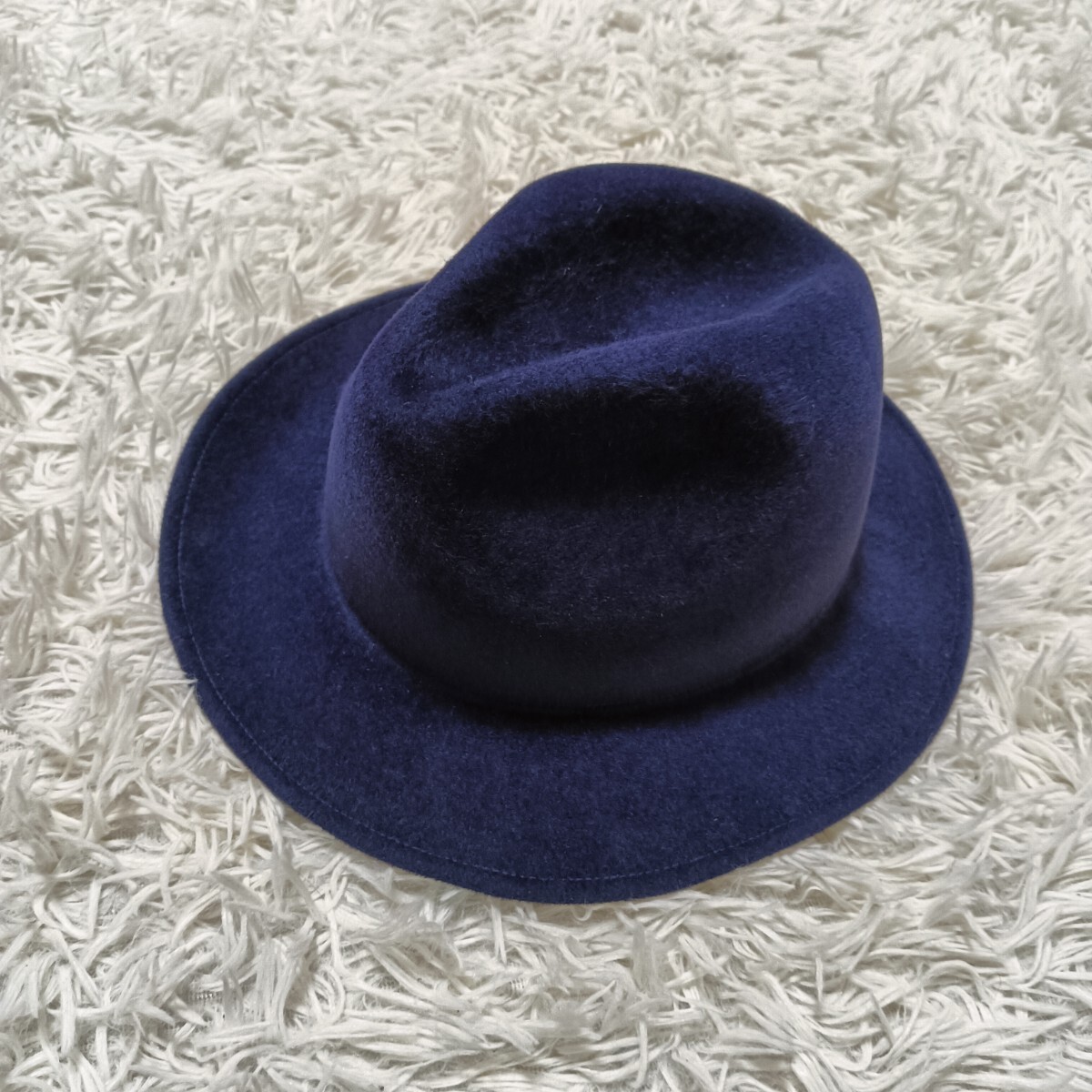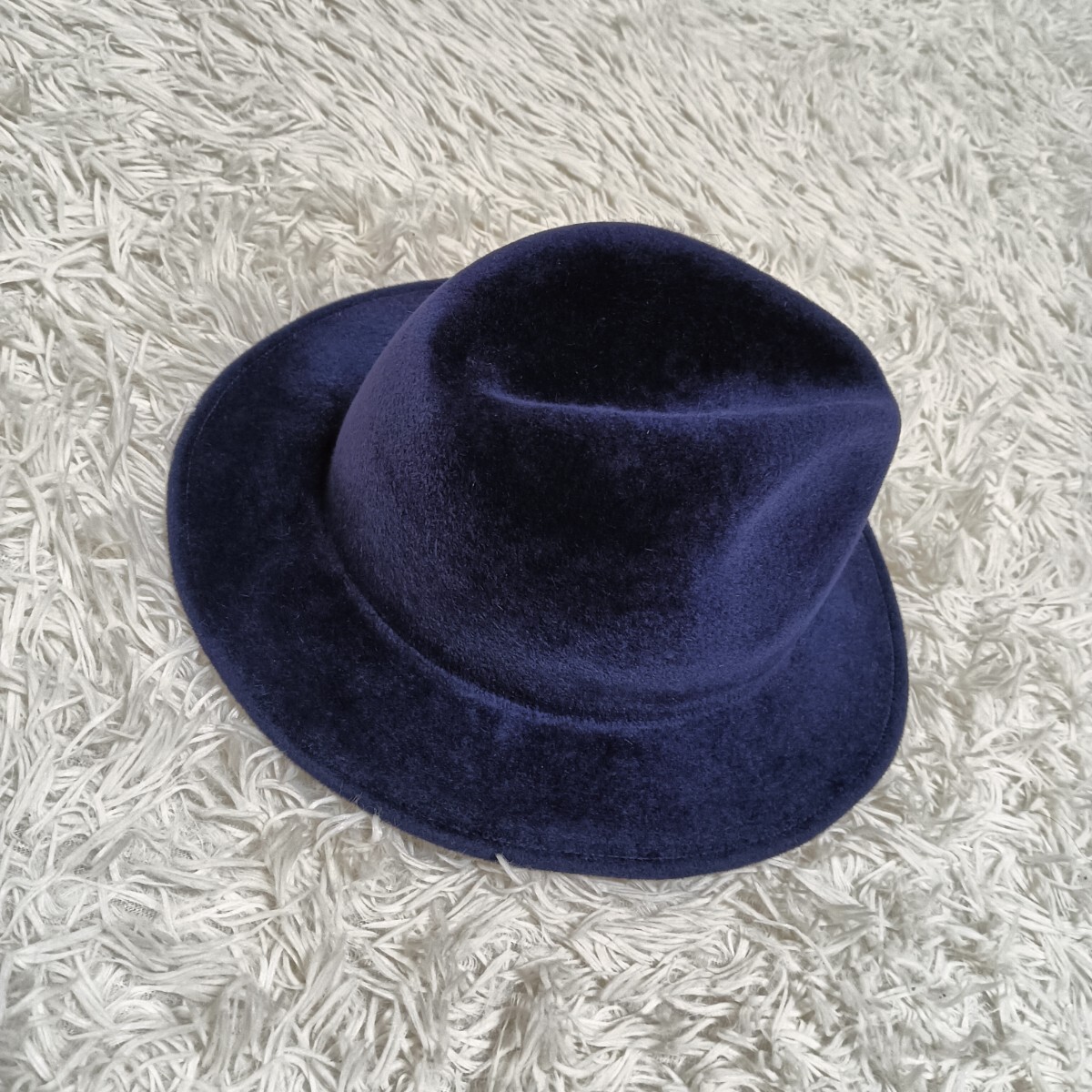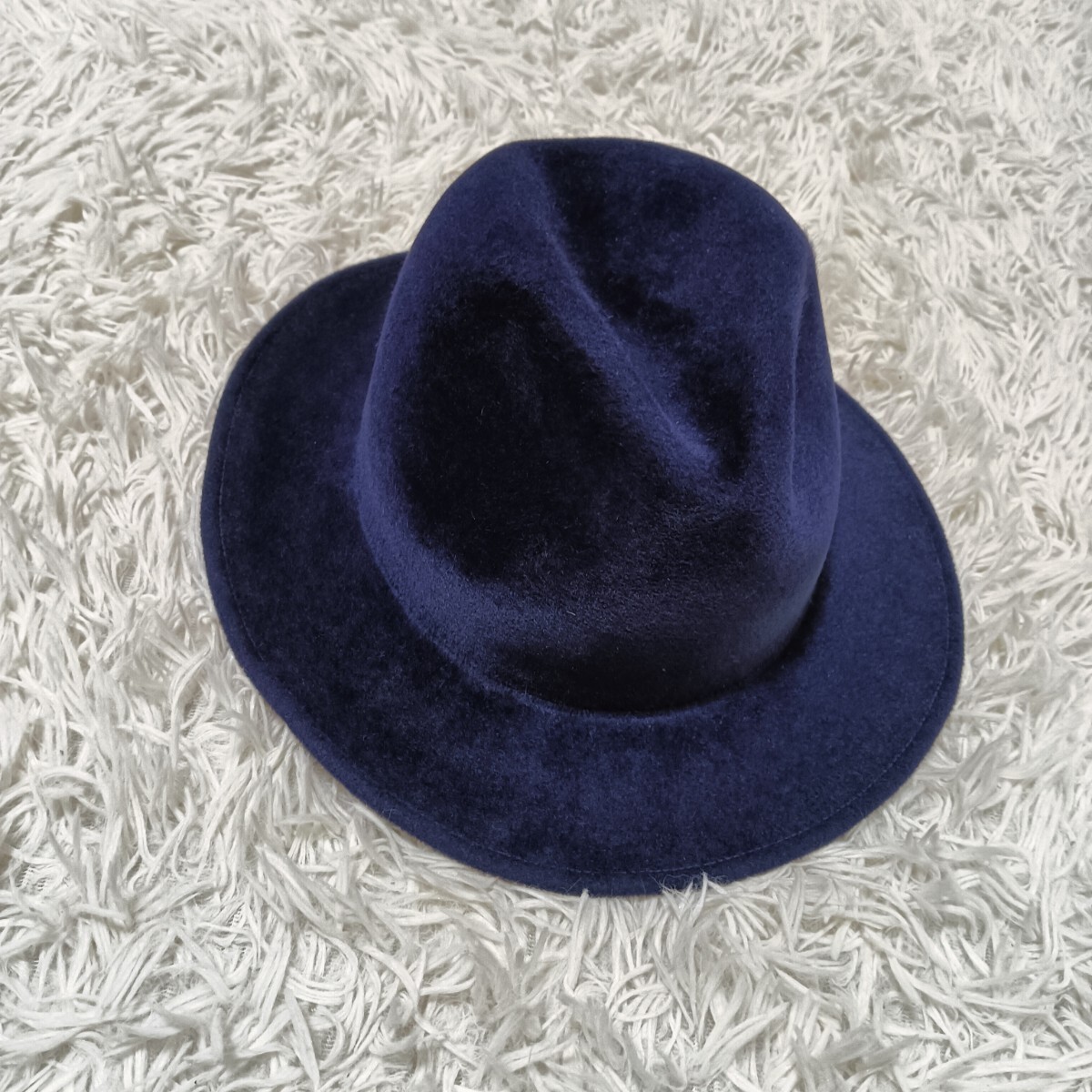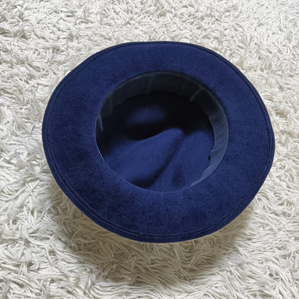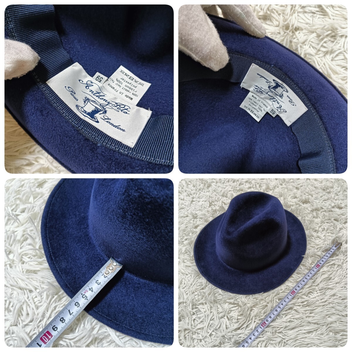 美品☆Anthony Peto アンソニーペト ラビットファー フェルトハット 中折れ ツバ付き帽子 ネイビー サイズ59 カジュアル シンプル ビートルズ ジョン・レノン オノ・ヨーコ 未使用に近い フランス製 古着 USED