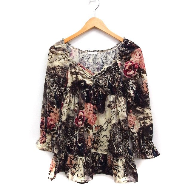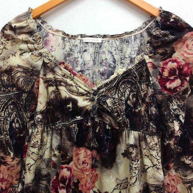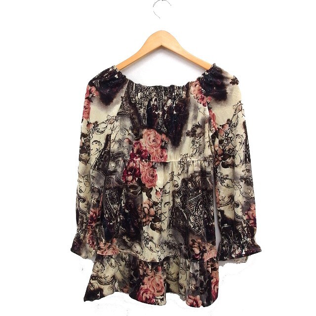 レストローズ L'EST ROSE プリント ベロア カットソー オフショルダー 長袖 2 ベージュ /FT33 レディース