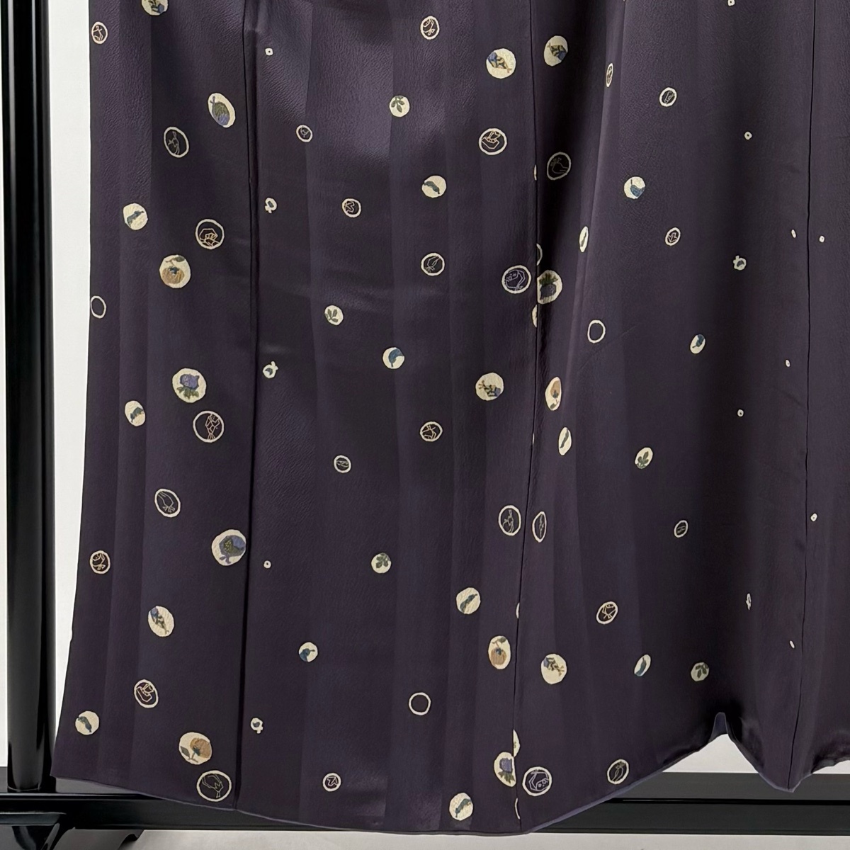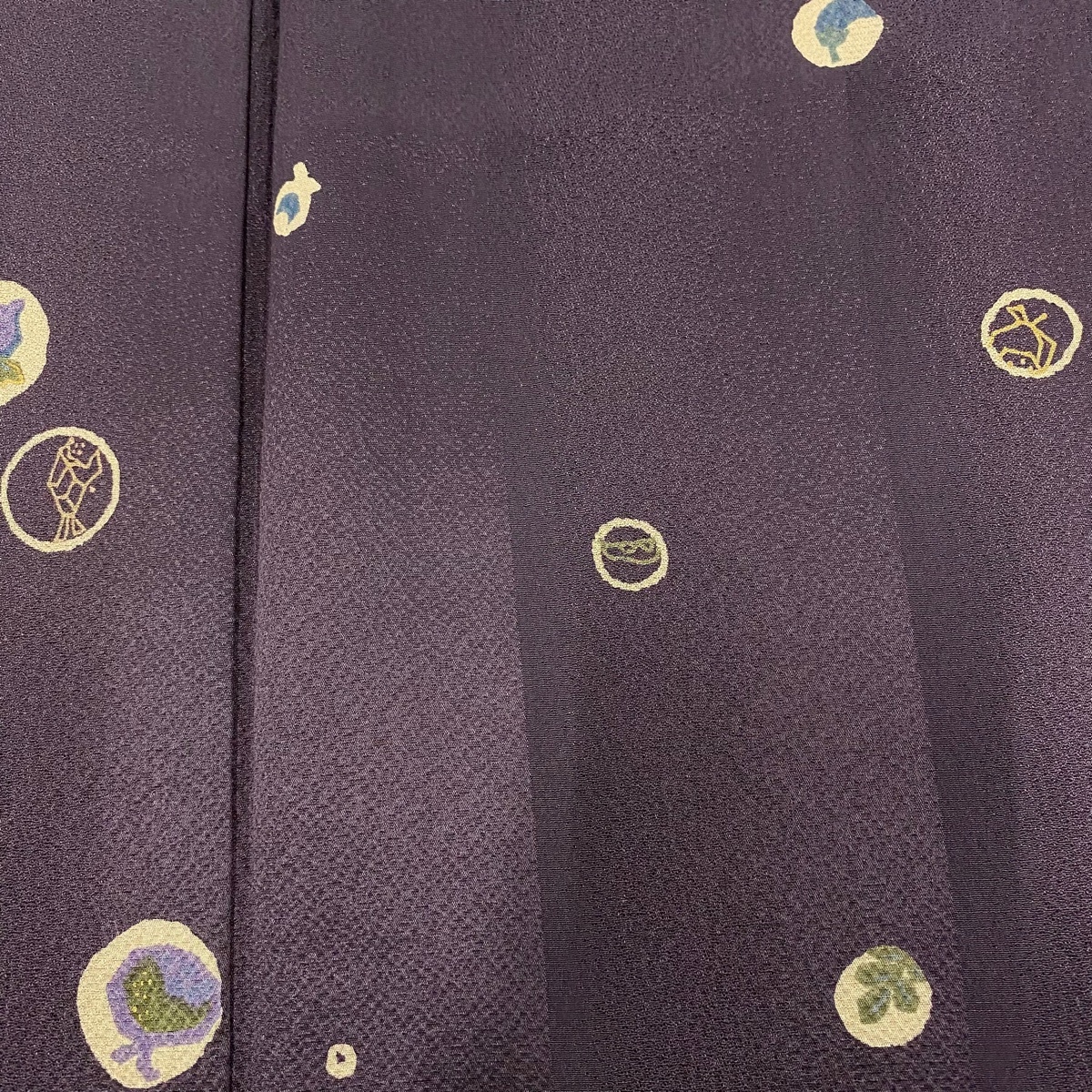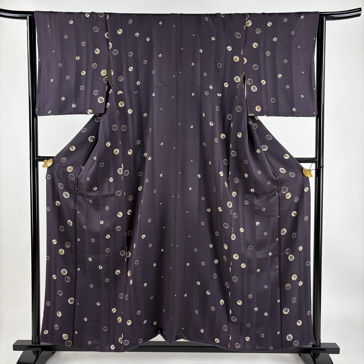 | 小紋 美品 秀品 生り物 丸文 金彩 紫 袷 身丈155 裄丈64 M 正絹 【中古】 |