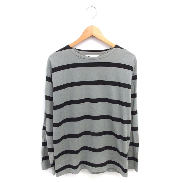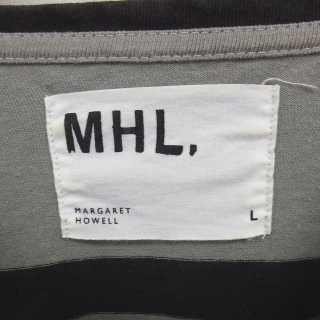 マーガレットハウエル MHL. Tシャツ カットソー ボーダー ボートネック 綿 コットン 長袖 L アッシュグリーン ブラック 緑 黒 /TT20 メンズ