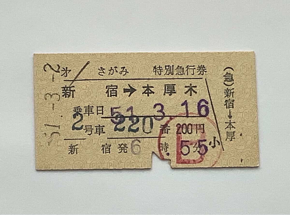 【商品】小田急電鉄 第1さがみ号 特別急行券 (新宿→本厚木) 新宿駅地下営業所発行 200円時代 6987
