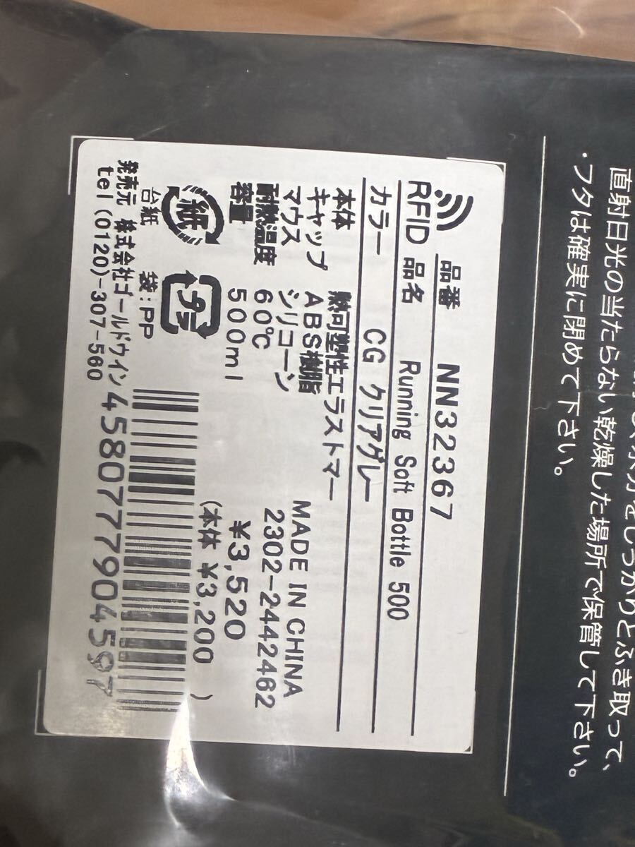 未使用 ノースフェイス RUNNING SOFT BOTTLE ソフトボトル グレー 500ml NN32367