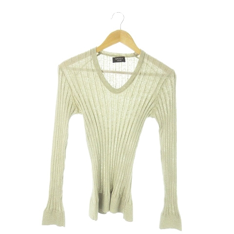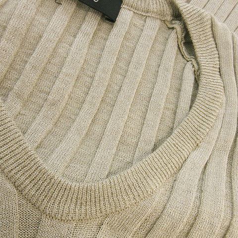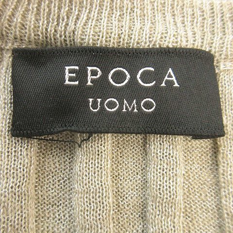 エポカ ウォモ EPOCA UOMO リブニット セーター ラウンドネック 長袖 ストレッチ 透け感 リネン 麻 46 S ベージュ /AO7 メンズ