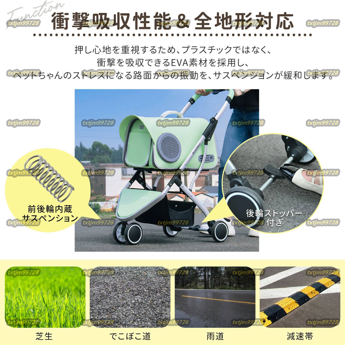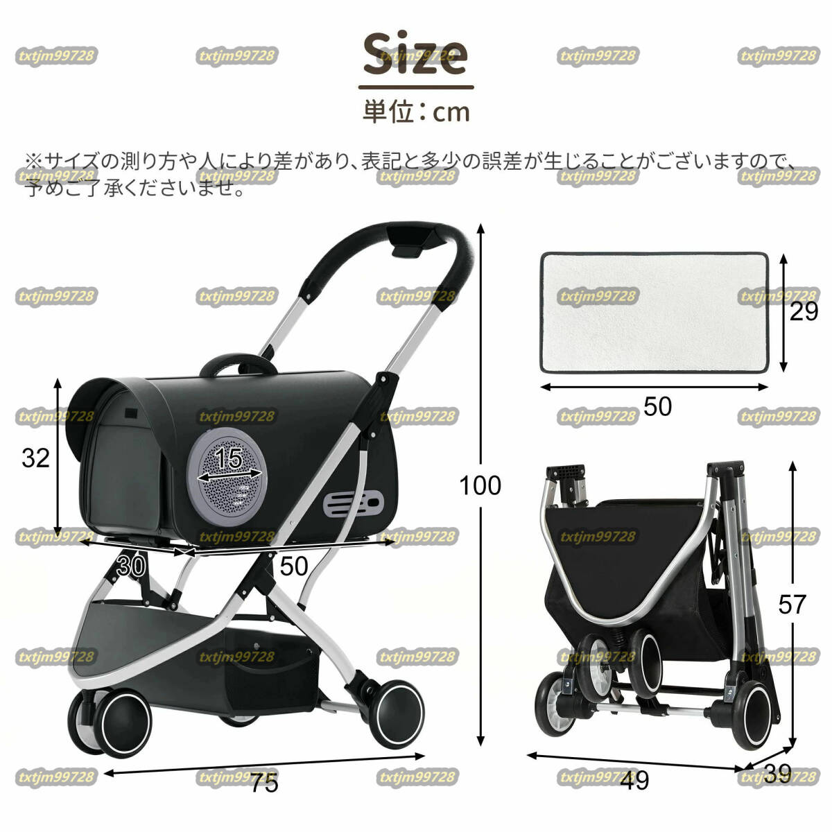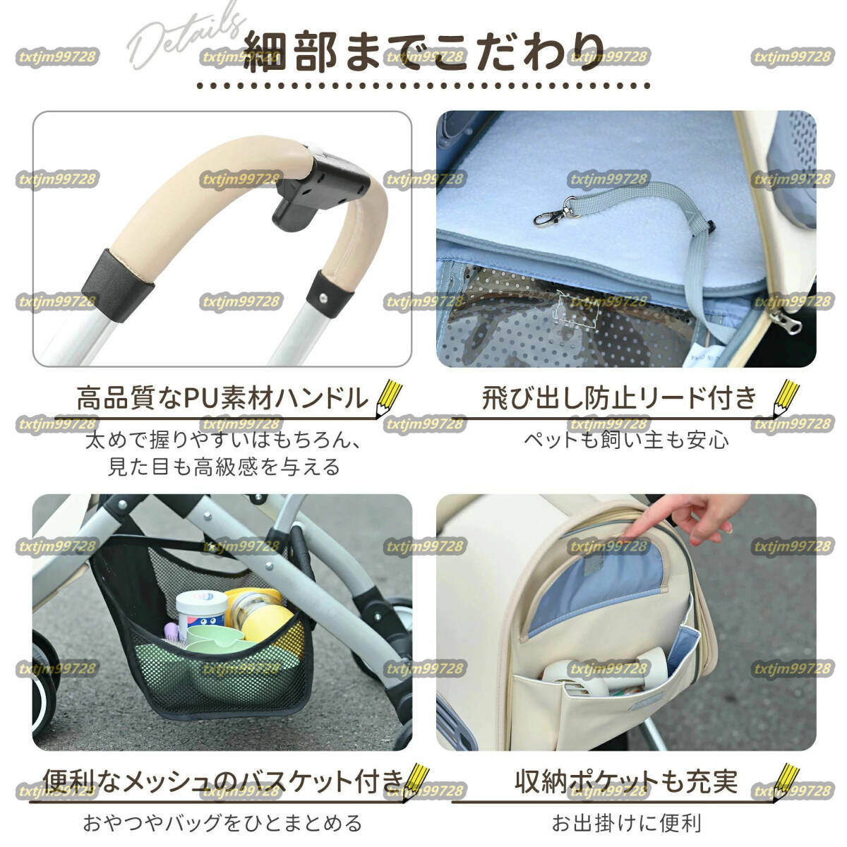 軽量 お散歩 お出かけ 中型犬 小型犬 猫 飛び出し防止 後輪ブレーキ付 前輪360°回転 3輪 コンパクト 収納 分離型 犬用ベビーカー