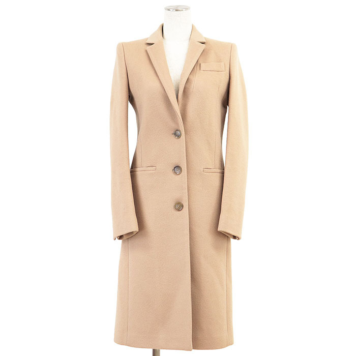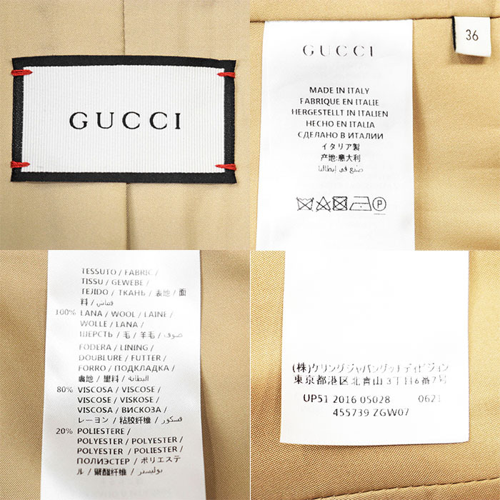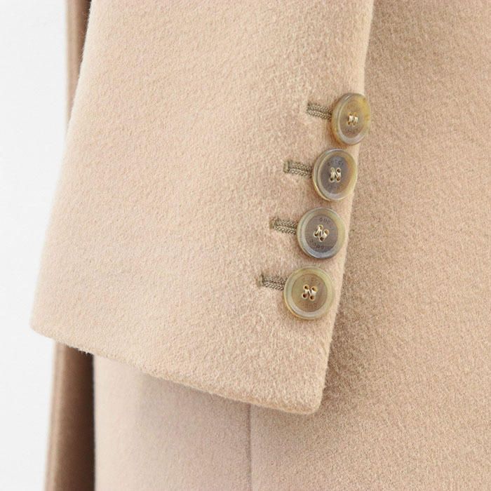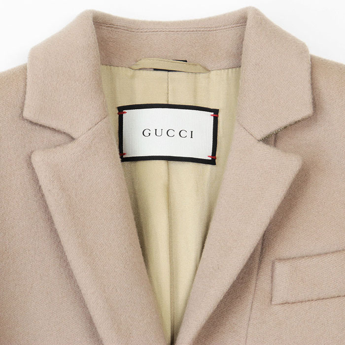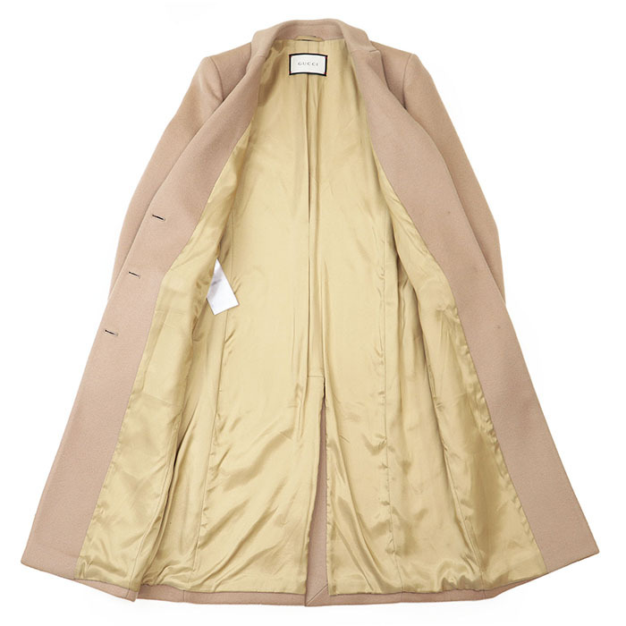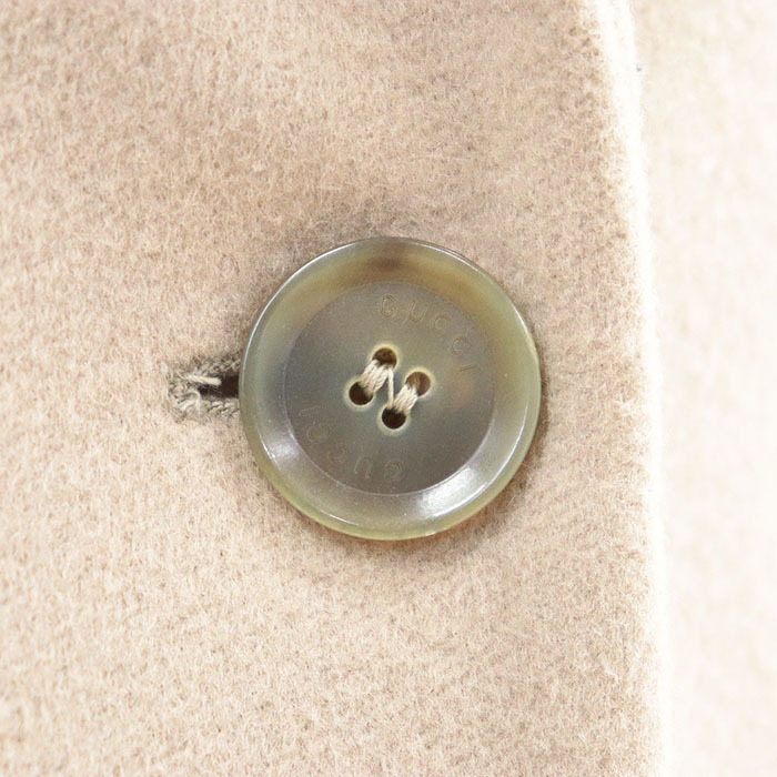 シリーズGUCCI グッチ コート チェスター 2016年製 ロゴ ボタン 3B メルトン ウール 100% ロング レディース 36 ベージュ 伊製 455739 ZGW07