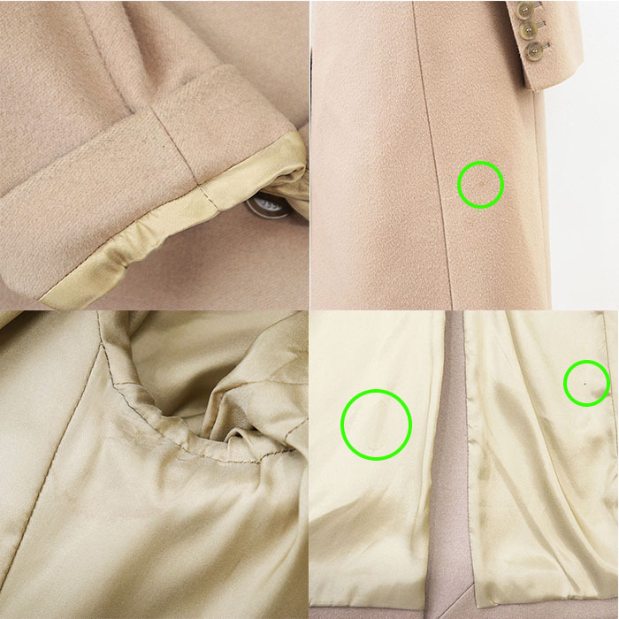 両脇と裾の裏地にシミと汚れ、後身頃の下部に汚れ、両袖口裏に使用感があるものの、