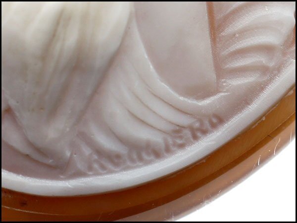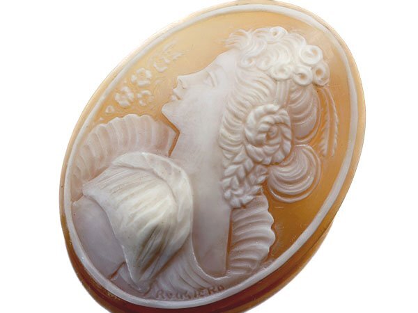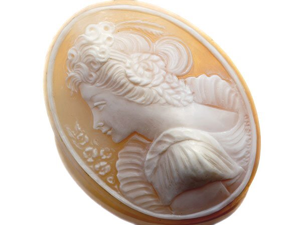 ほほ笑む女性像の彫刻が魅力的なシェルカメオルースを激安価格で特別大放出致します!