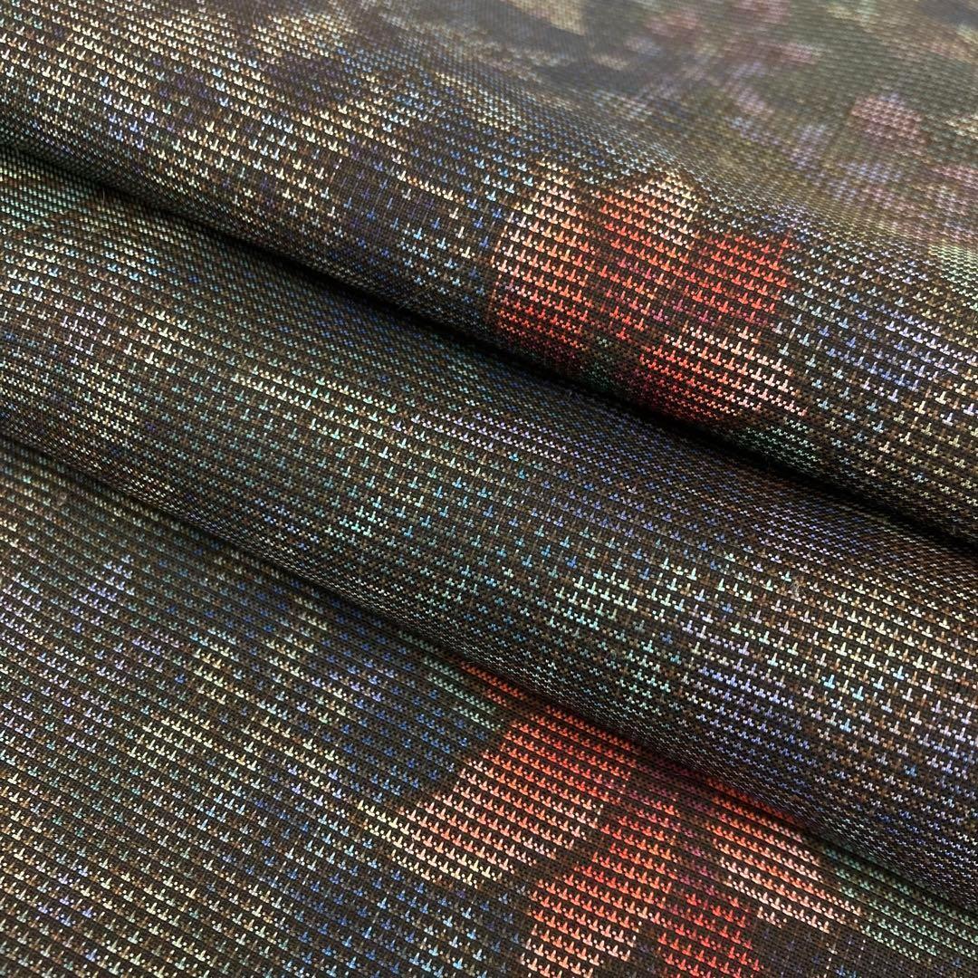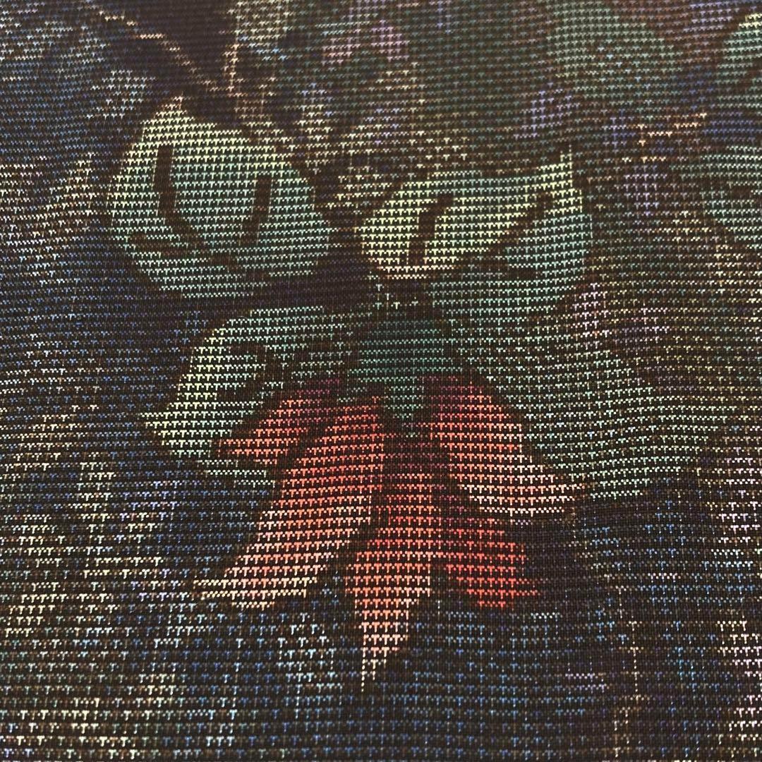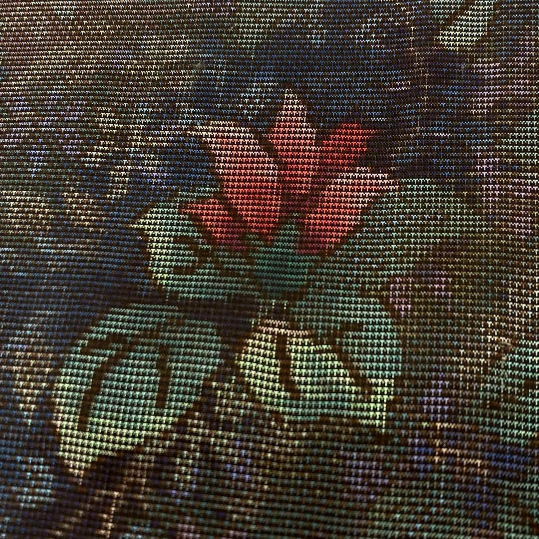 柔らかな藍色地に 奥行きを感じさせる花柄が織り出された本場大島紬。
