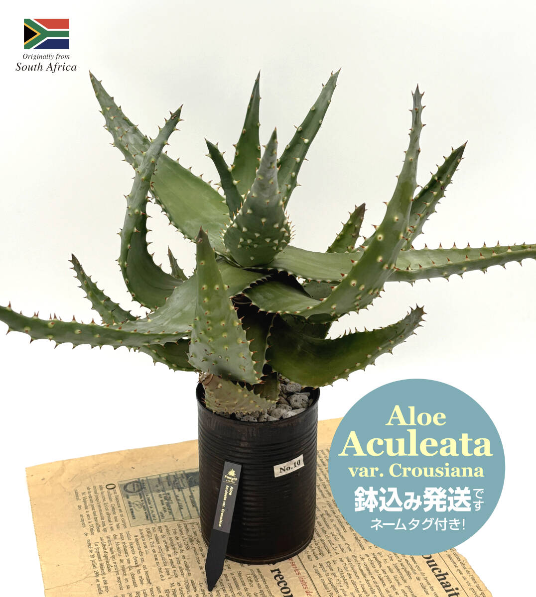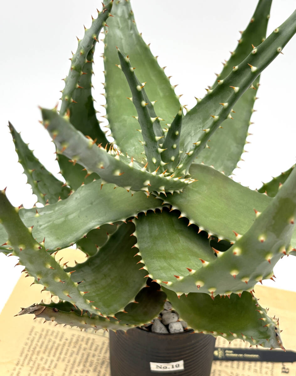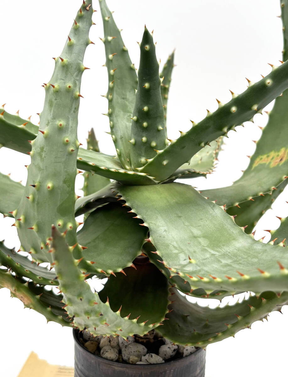 南アフリカ原産。アロエの中でも葉の全面強いトゲだらけのルックスが魅力の比較的小型の品種です。