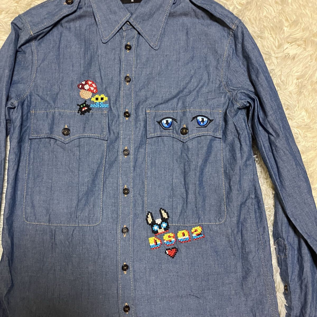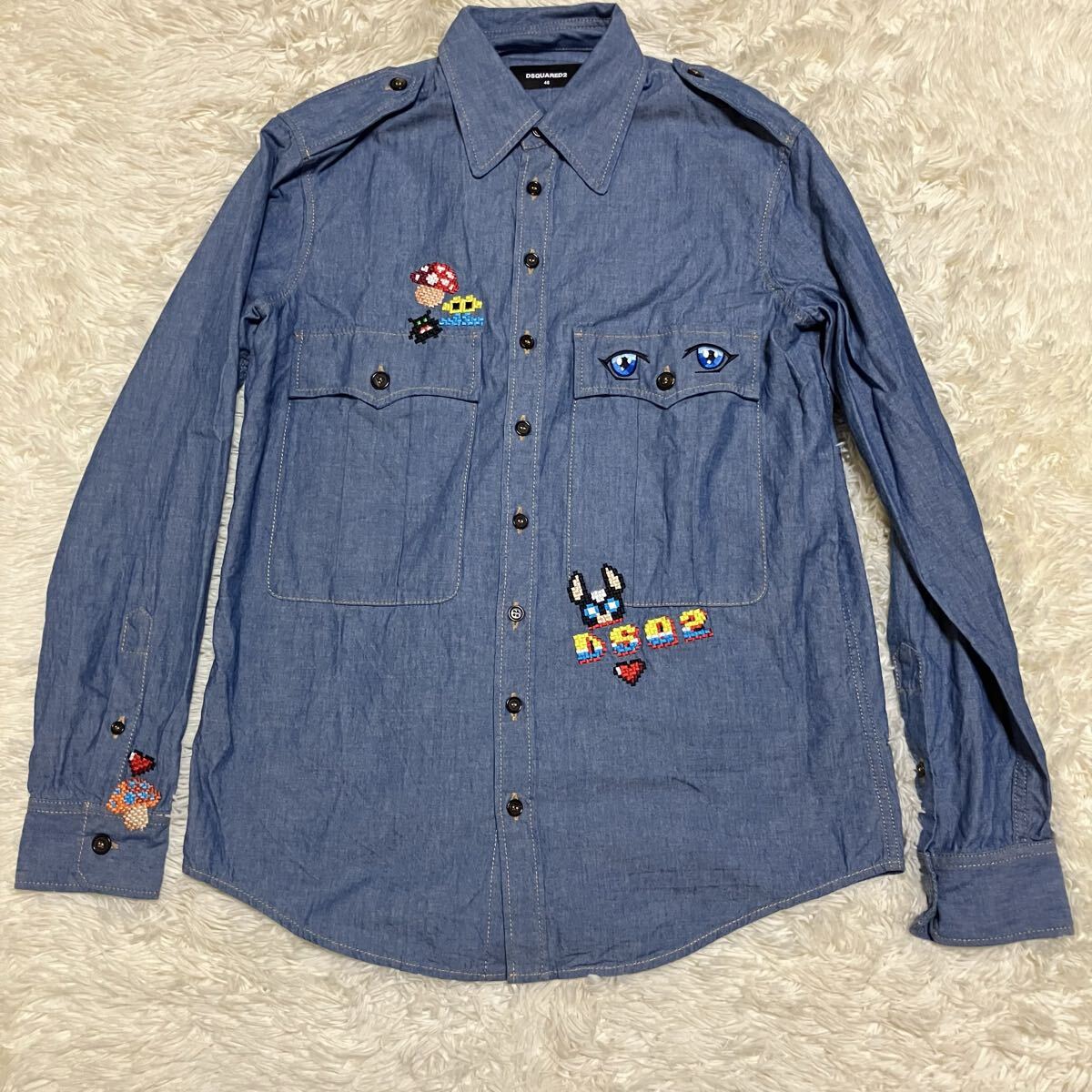 ディースクエアードのシャンブレーシャツです。刺繍でキャラクターがデザインされており、遊び心があります。ほほぼ未使用のお品です。