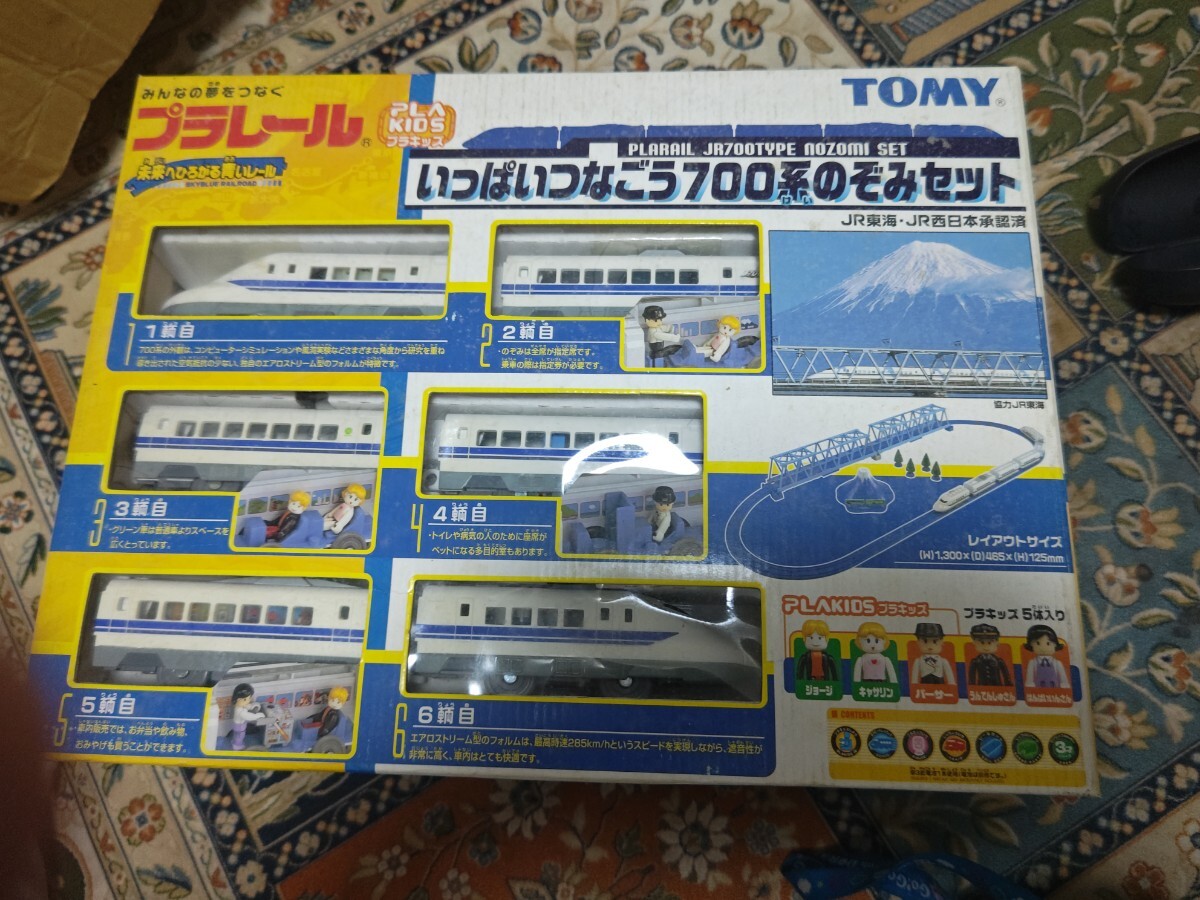 アクセスありがとうございます。下記の情報をご確認ください。プラレールいっぱいつなごう700系のぞみセット、未開封未使用です。新品ではないため完璧なものをお求める方は入札はご遠慮ください。外箱は経年による傷みキズ、折れ目や破れなどがある場合もございます。ノークレームノーリターンノーサポートでお願いいたします。日本郵便で発送致します。他にも出品しております。よろしくお願いいたします。落札後3日以内に取引ナビよりご連絡お願い致します。3日以内にご連絡がない場合は落札者都合により取り消しをする場合がございます。ご入金は7日以内にお願いいたします。入金が確認次第発送致します。私の仕事の都合によりご連絡、発送が遅れることがございます。ご了承ください。