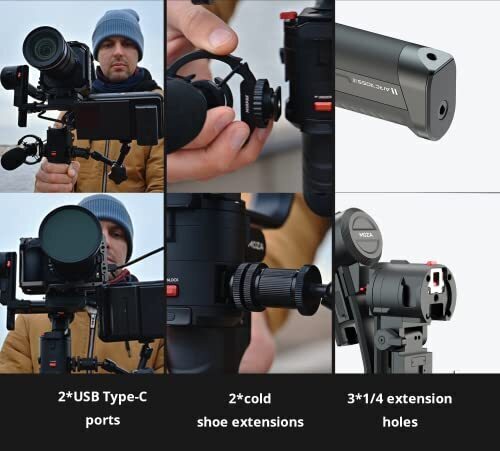 【強力な拡張機能】USBType-Cポート*2、コールドシューエクステンション*2、1/4延長穴*3により、マイク、補助照明、モニターなど、さまざまな機材を追加アクセサリーなしで取り付けられる汎用性を備えています。