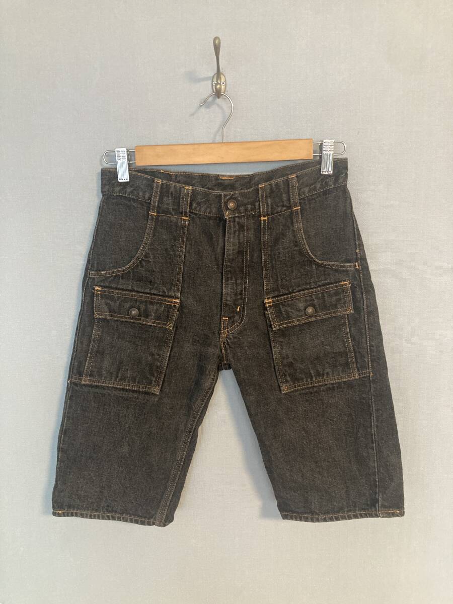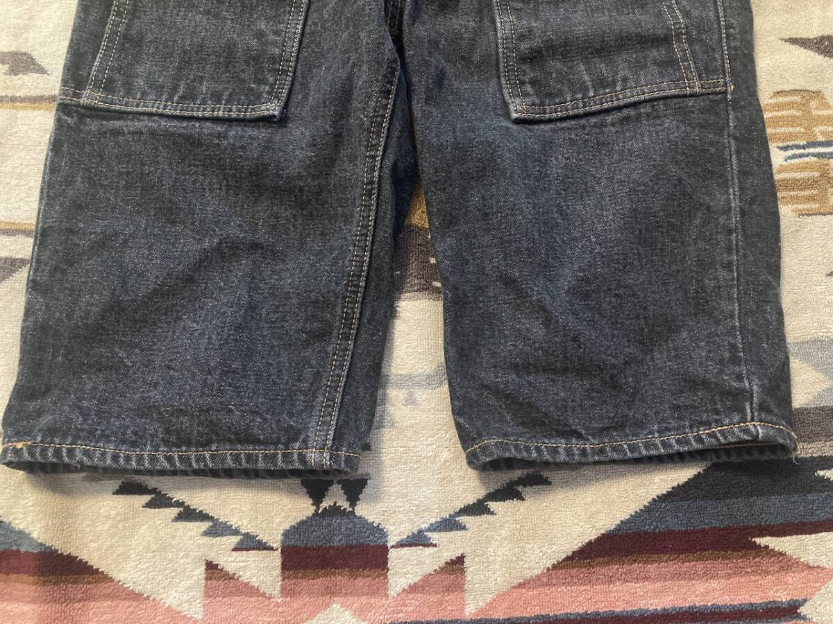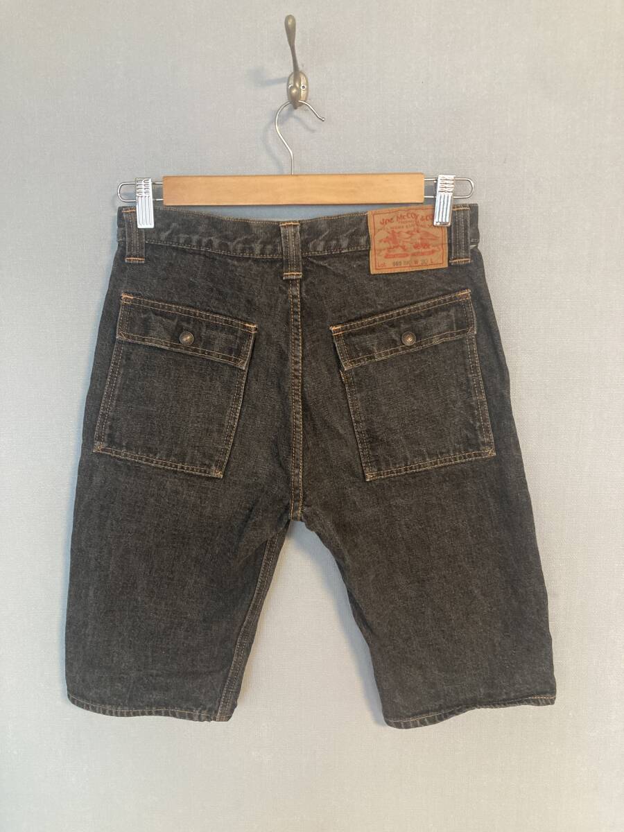 商品名:JOE McCOY 969 BK デニム ハーフパンツ サイズ:表記W30 平置き:W38cm(×2) L27cm(股上) 31cm(股下) サイド全長55,5cm。 裾幅21cm(素人採寸の為多少の誤差はご了承下さい) カラー:ブラック 状態:スナップボタン。ZIPフライ。ポケット×6(スナップボタンフラップ×4)。裾=チェーンステッチ。目立ったダメージ等無く良い方だと思います。 発送方法:レターパックプラス(配達記録付600円)orレターパックライト(配達記録なし430円) ※古着になりますので神経質な方、ご理解の無い方の御入札はお控え下さい。送料、振込手数料は落札者様の御負担となります。ノークレーム、ノーリターンでお願い致します。