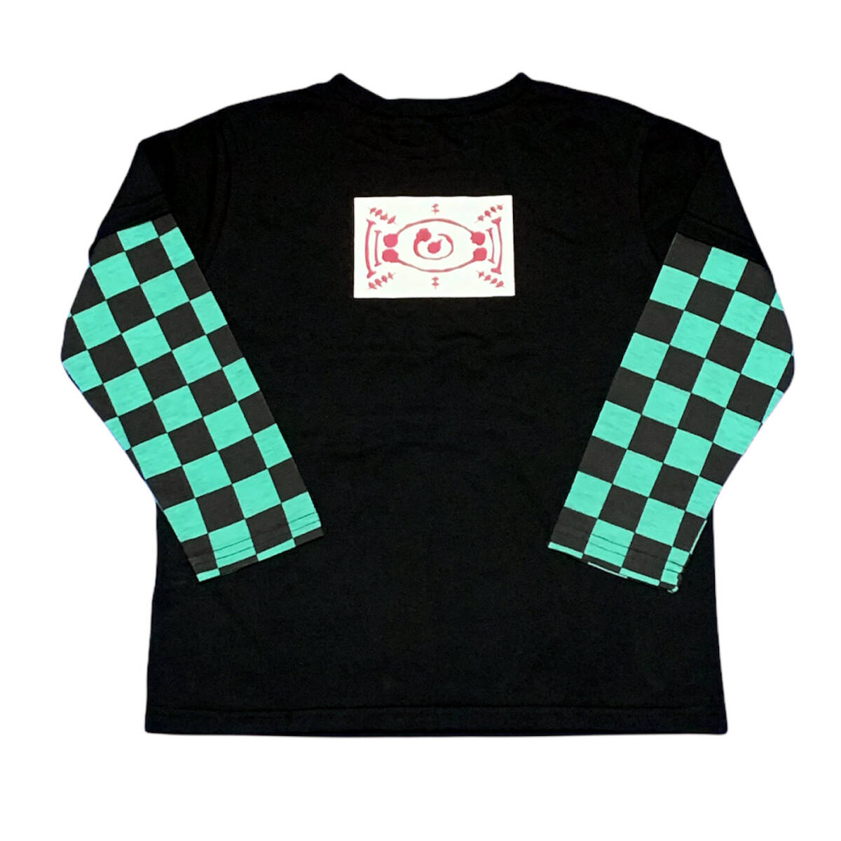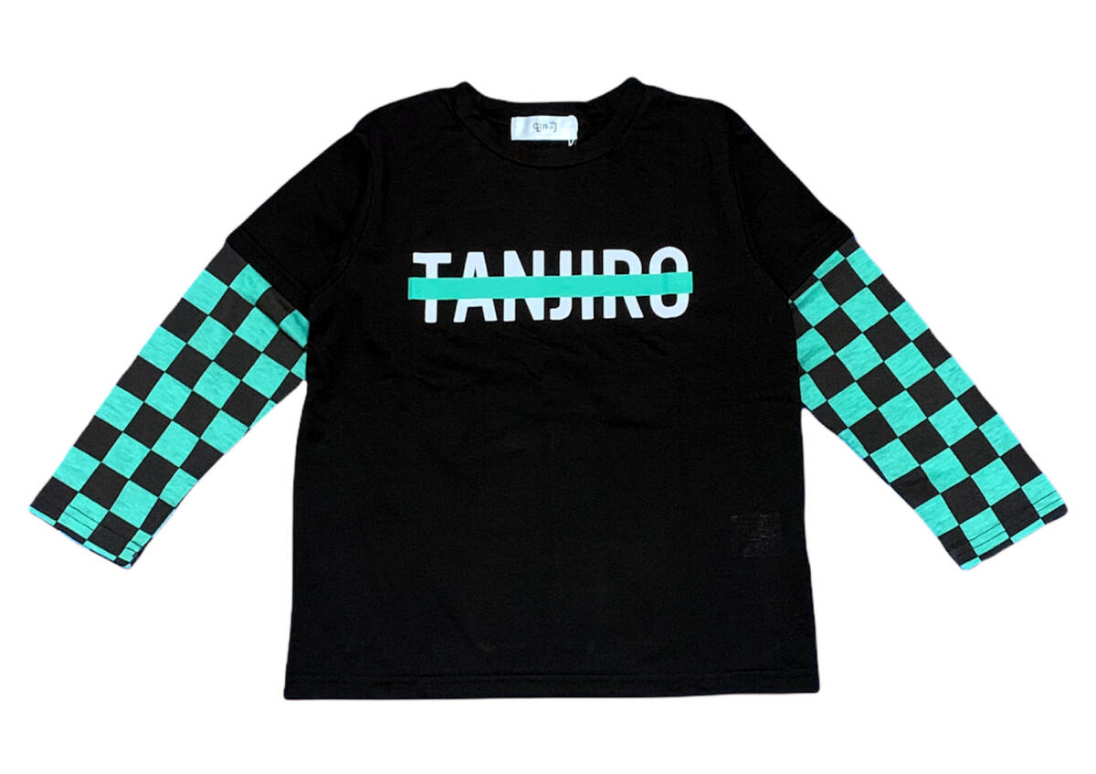 鬼滅の刃 Tシャツ 七分袖 長袖 カットソー レイヤード風 重ね着風 竈門炭治郎 ブラック 130cm 子供 キッズ | |||