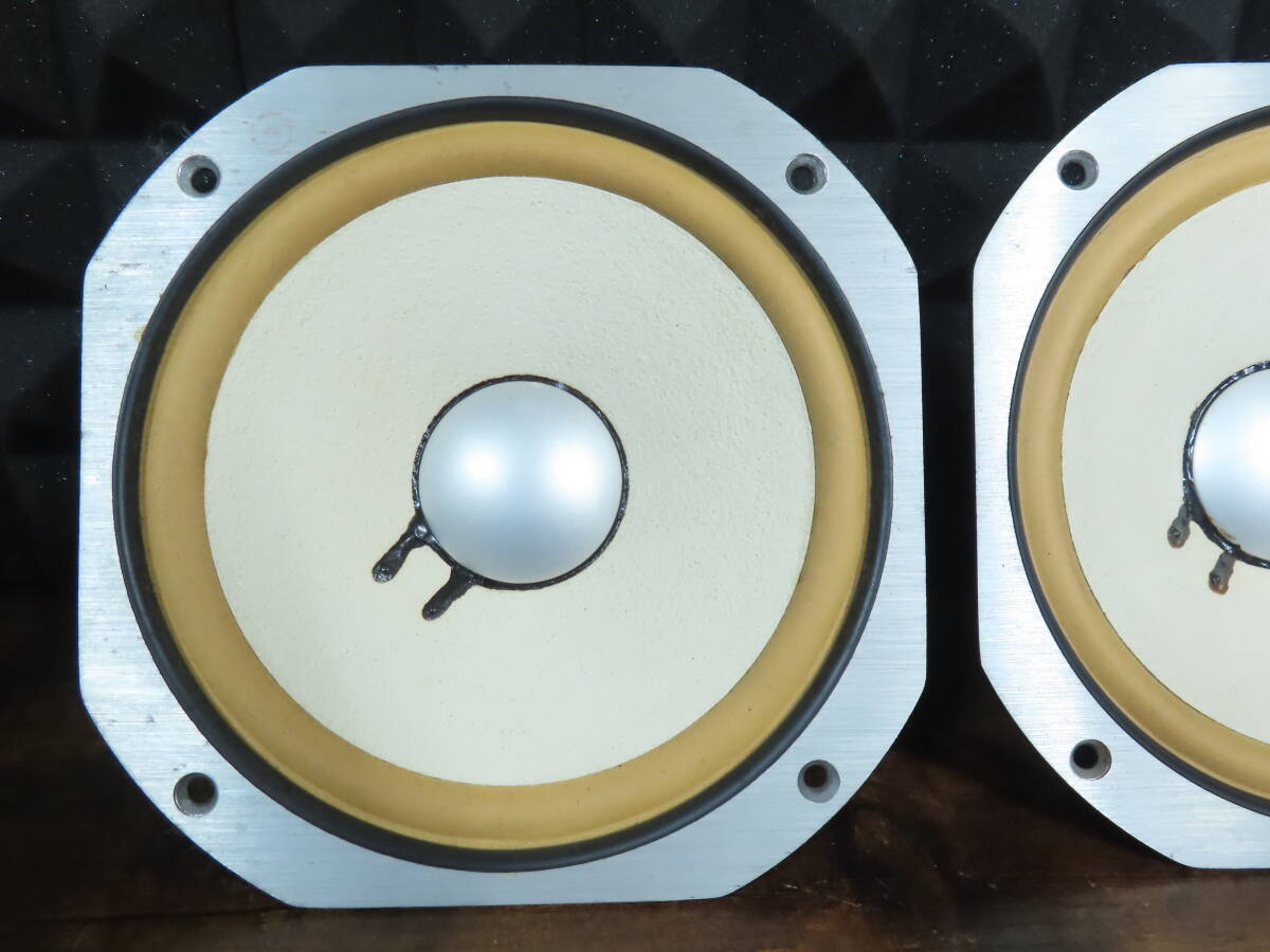 □着色無しのフルオリジナルのLE8Tです。 □振動版にシミ一つ無い極上美品のペアです。 □片側ランサロイの縁に表面のクラックがあります。 □20cmの最高峰アルニコフルレンジ。 □左右クリアサウンドで動作は良好です。 □状態は画像を確認ください。 | ||||