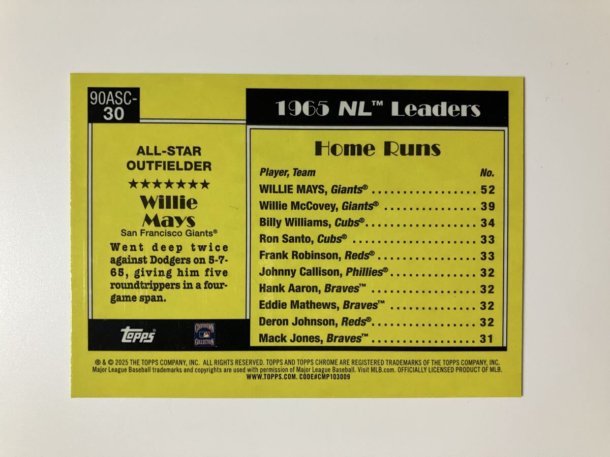 Topps chrome MLB 2025 series2 35th anniversary 90ASC-30 Willie Mays