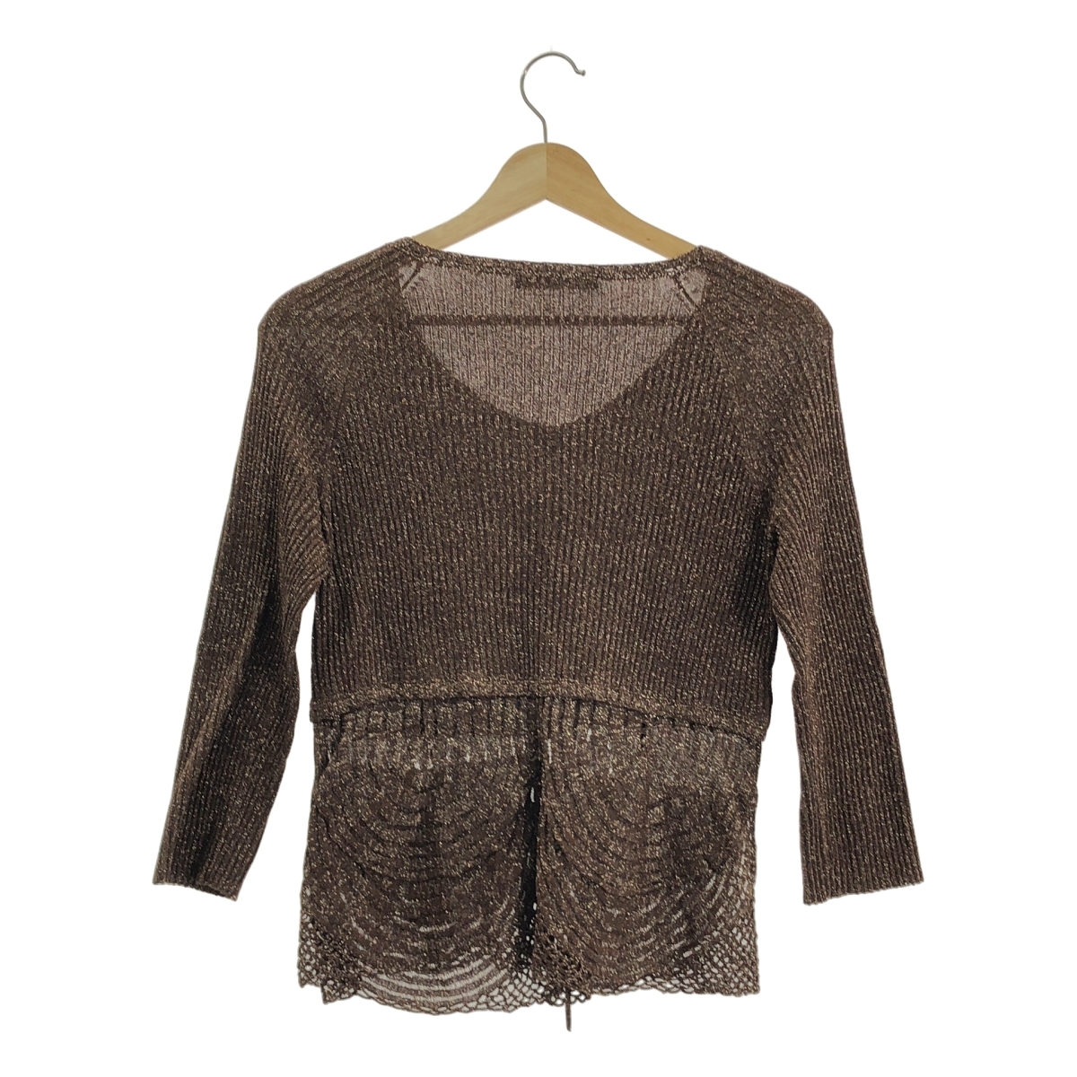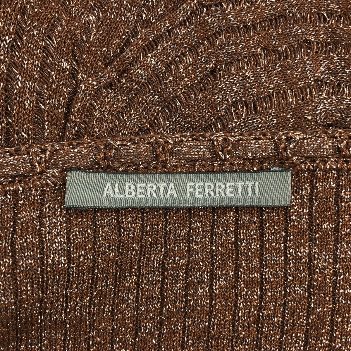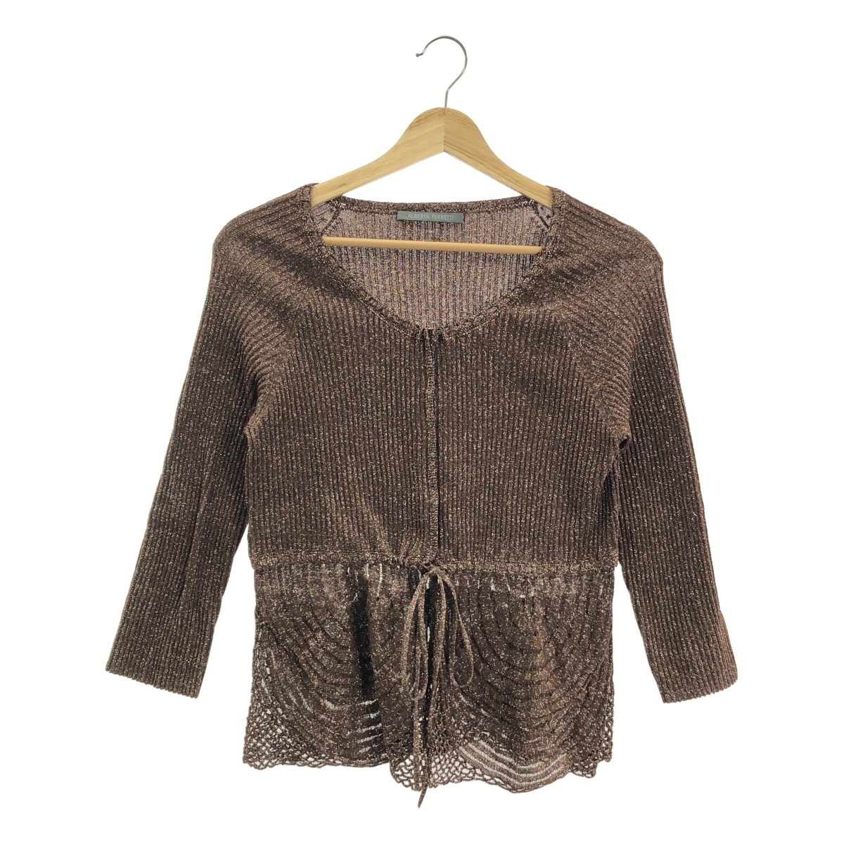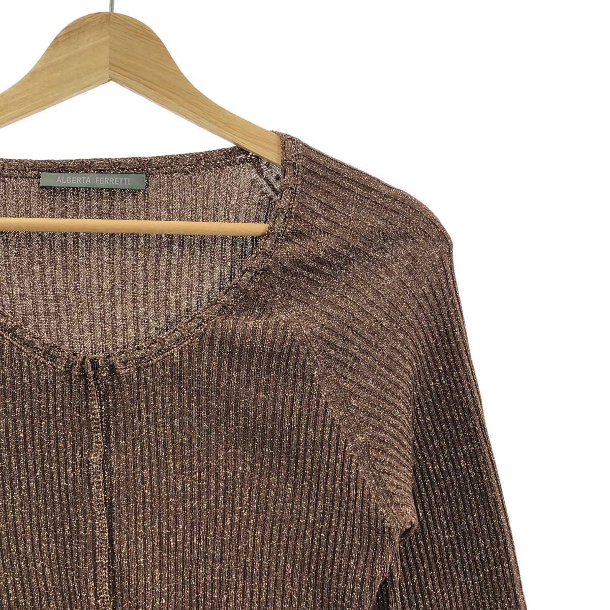 【美品】 ALBERTA FERRETTI / アルベルタフェレッティ | コットン ラメ リブ ニット カーディガン | 42 | ブラウン | レディース