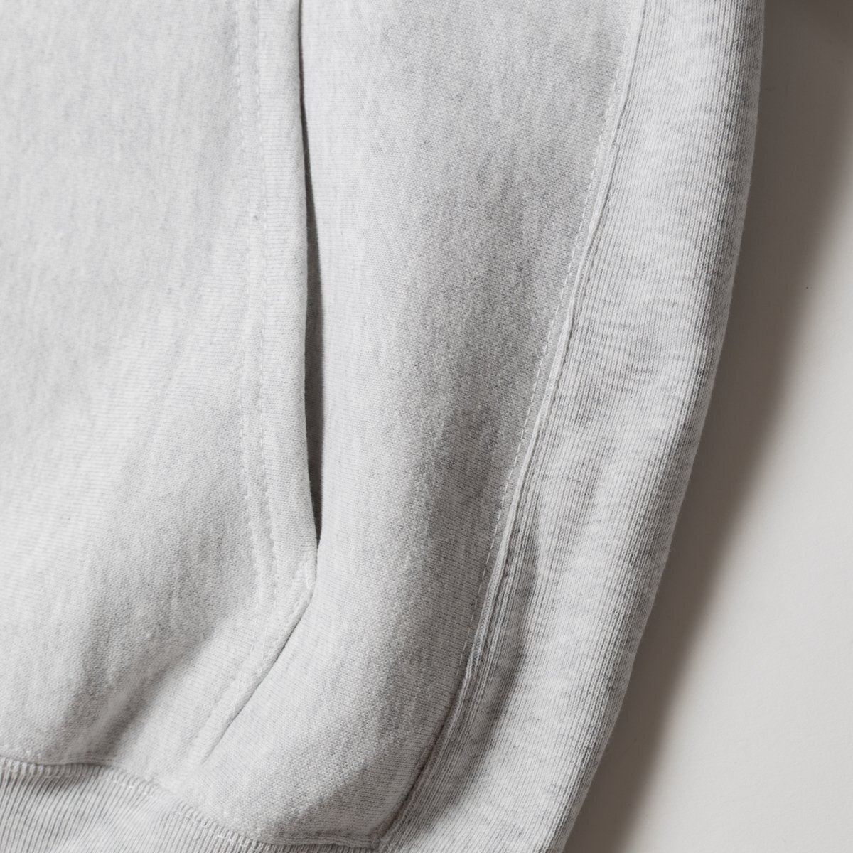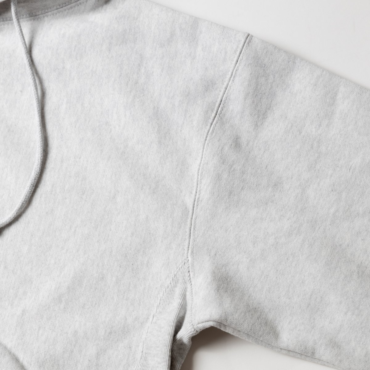 型崩れを防ぐサイドパネルデザインや、太めの袖口などChampionリバースウィーブなどに似たボリューム感。
