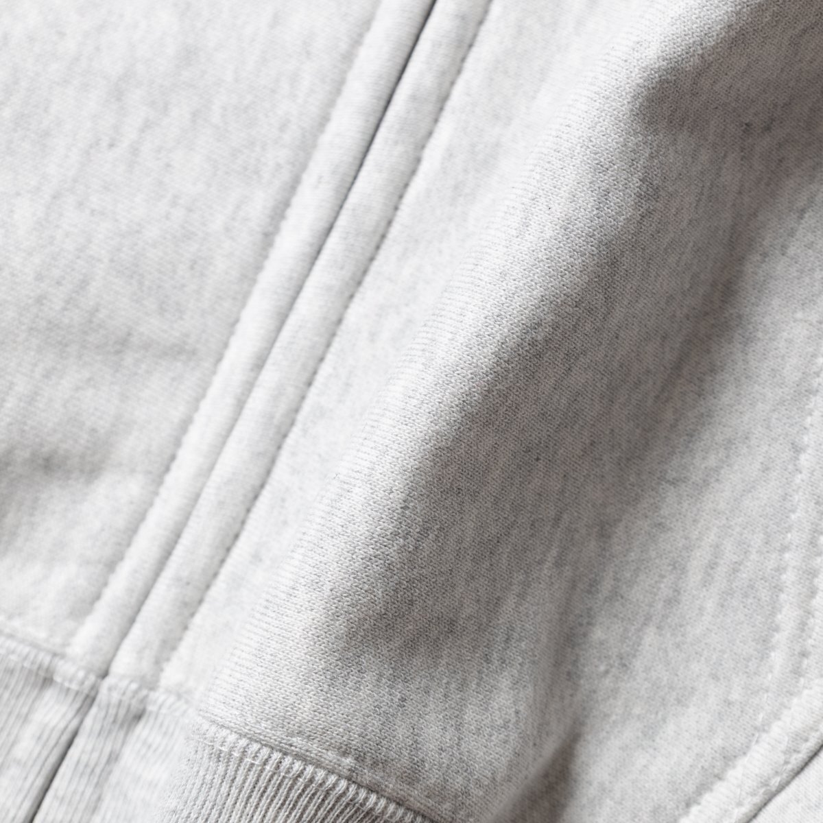 オープンエンド糸特有のドライな質感が特徴の12.0オンス裏起毛フルジップパーカー。
