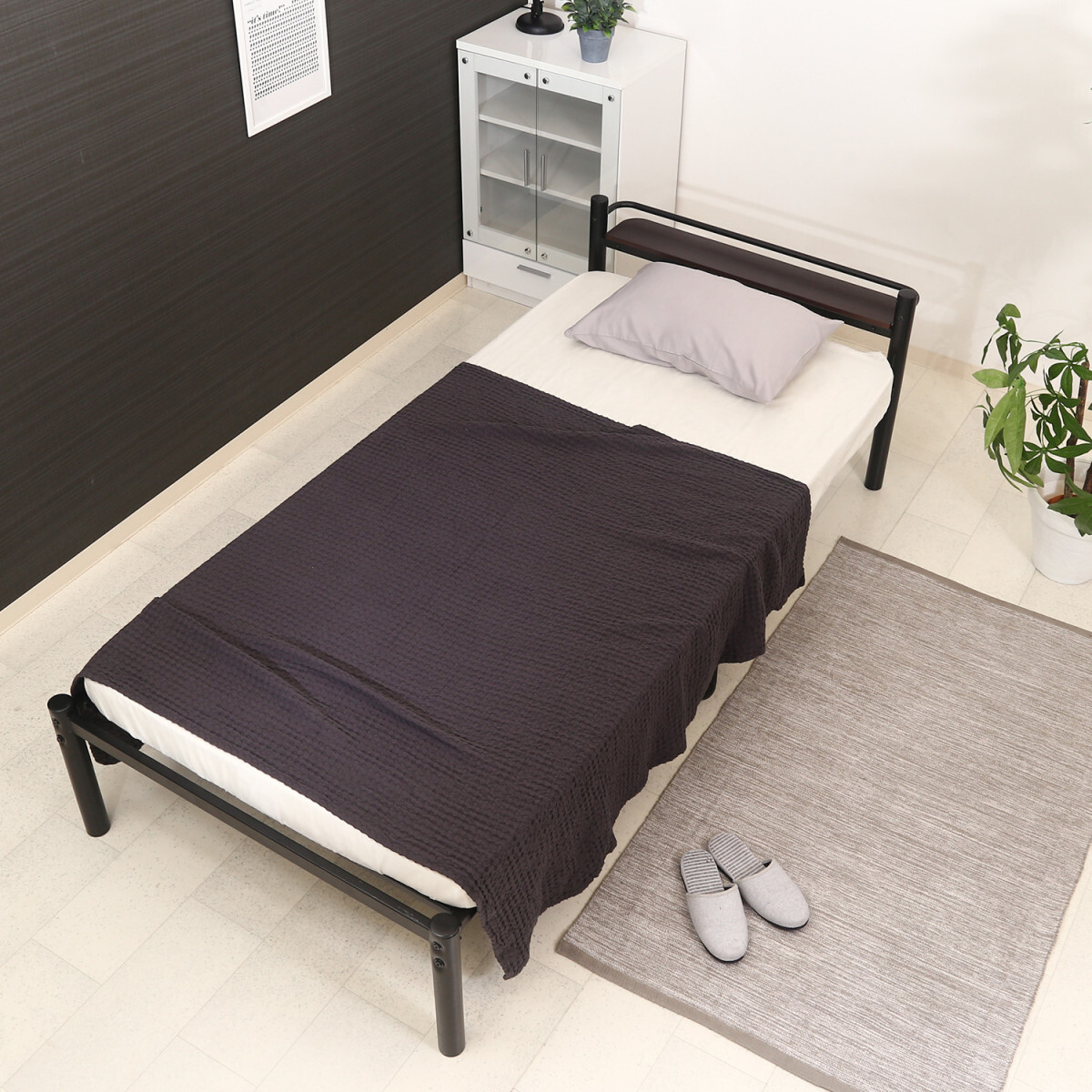 シングルベッド 宮付きパイプベッド ブラック【新品】【送料無料】(北海道 沖縄 離島は別途送料)