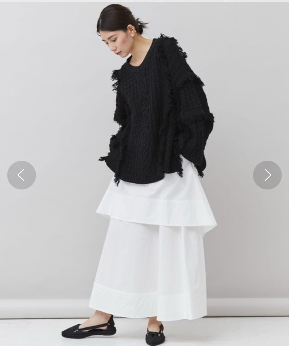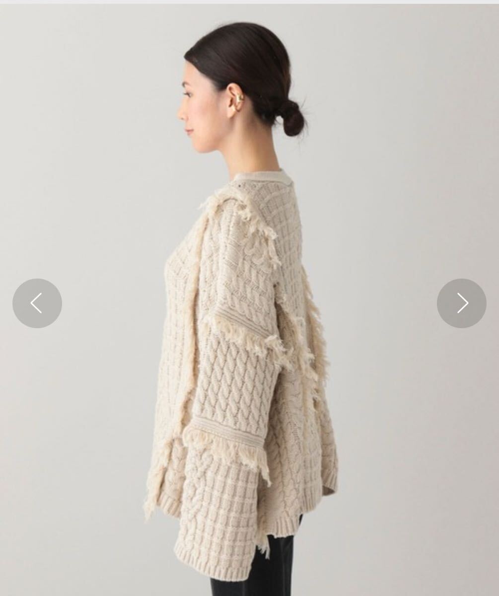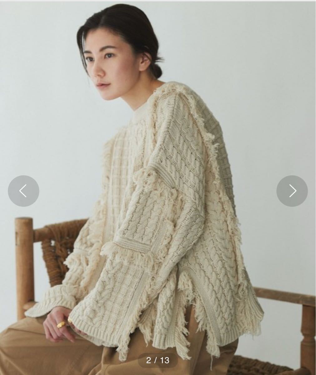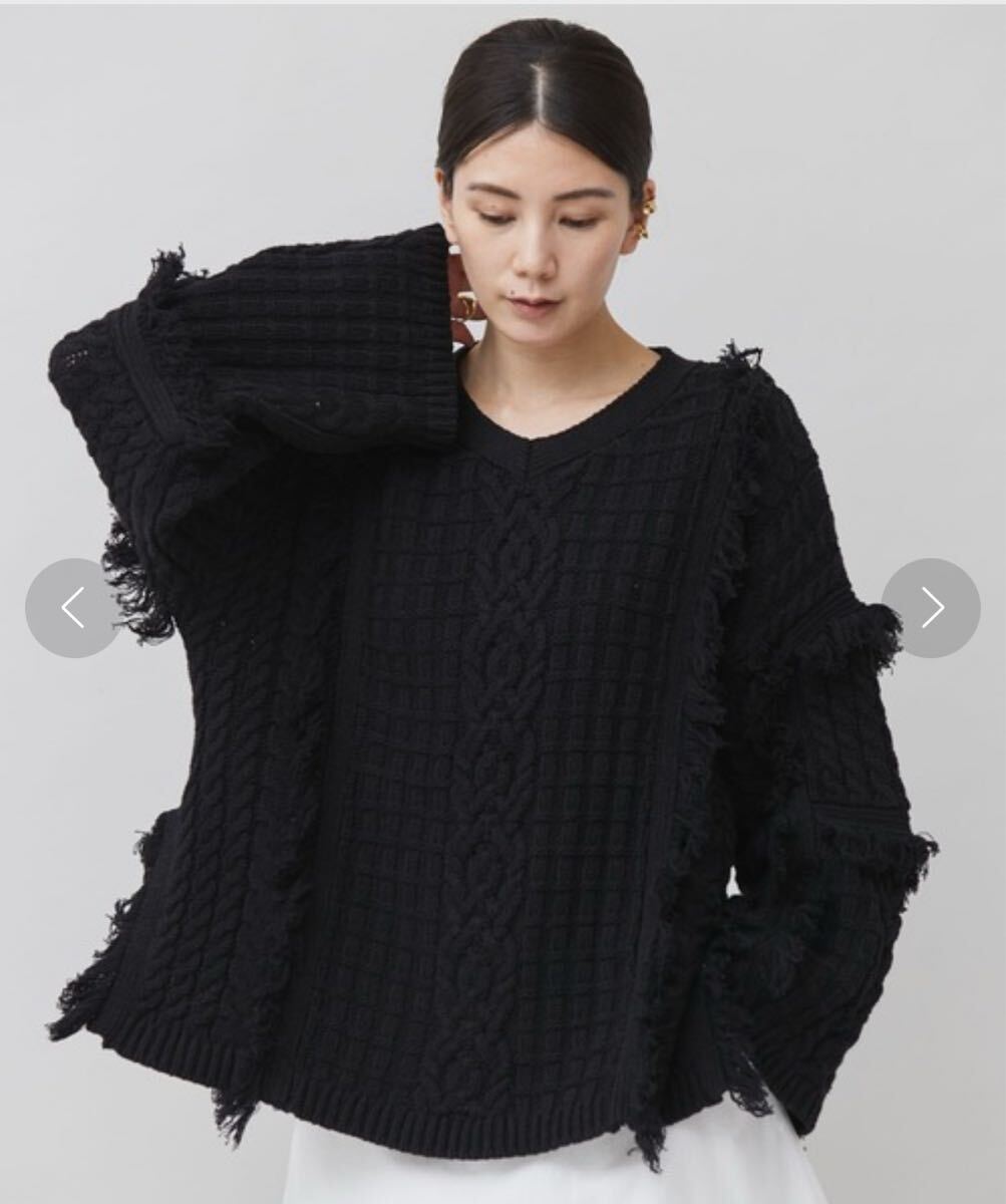 こだわりのアラン編みとフリンジをふんだんに取り入れ、とことんディティールを詰め込んだアイコニックなデザインが美しいニットプルオーバー。1枚で華やかにスタイリングをブラッシュアップしてくれる主役級の一品です。
