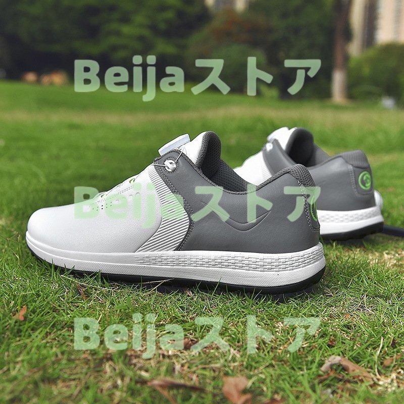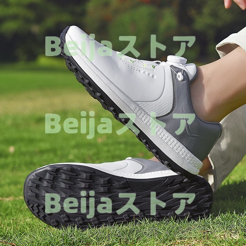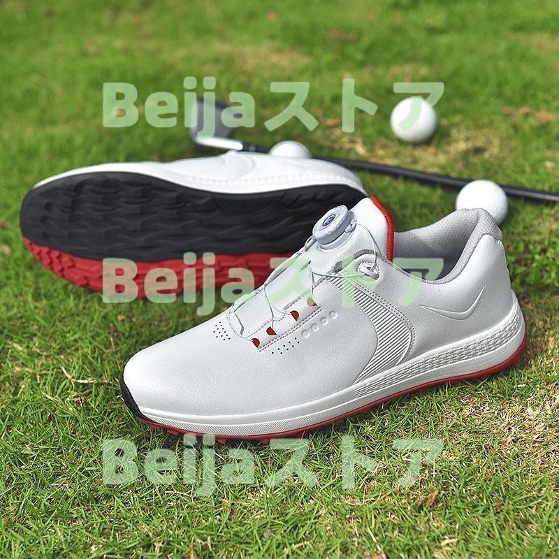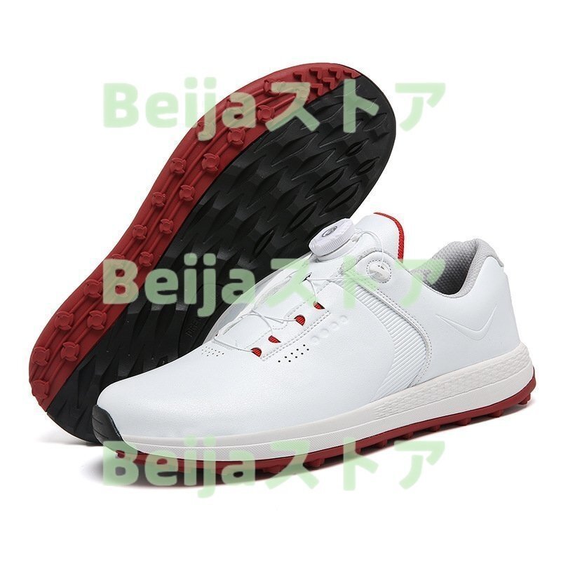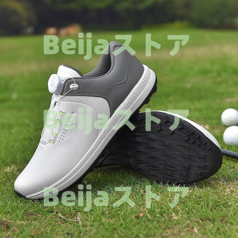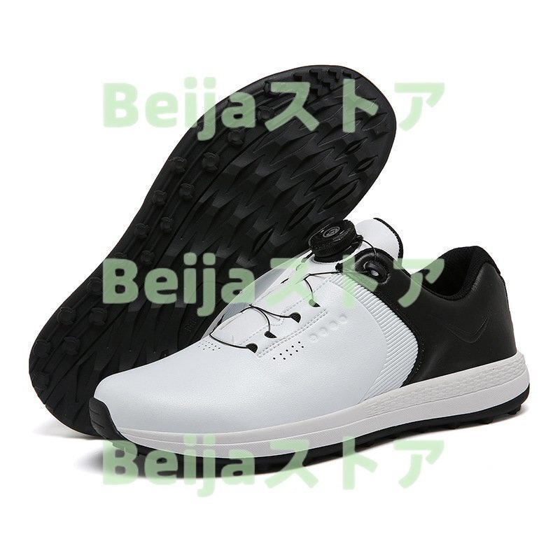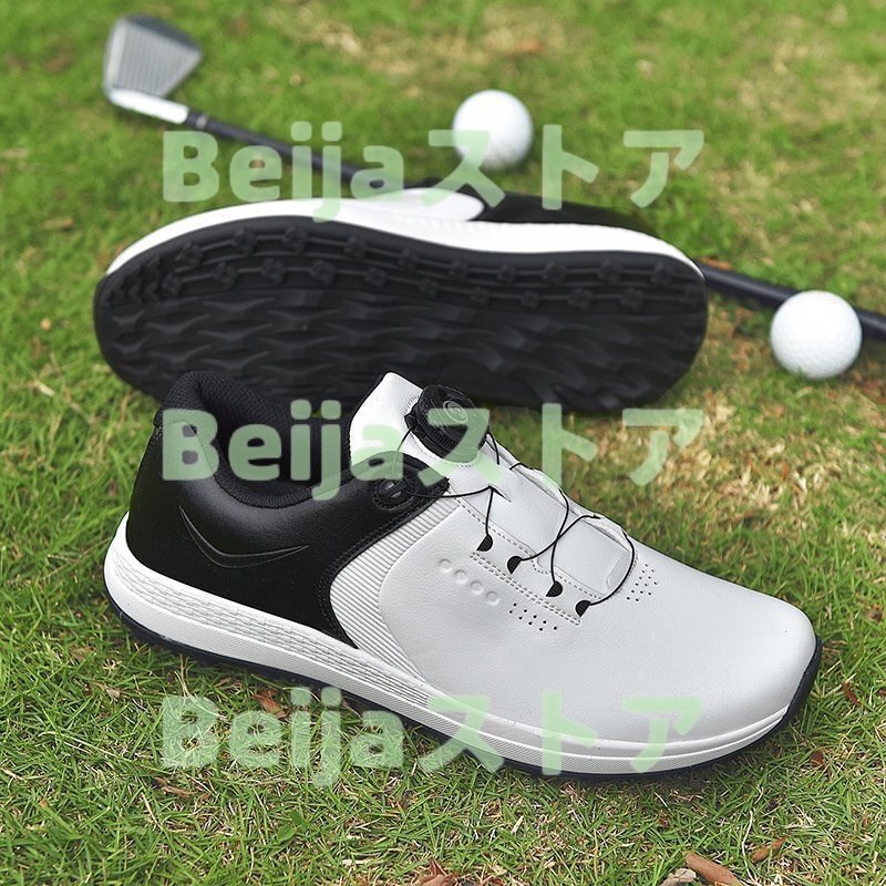 高級品 ゴルフシューズ 新品 ダイヤル式 運動靴 メンズ幅広い フィット感 軽量 スポーツシューズ 防水 防滑 耐磨 弾力性 白*黒 24.5cm~28cm