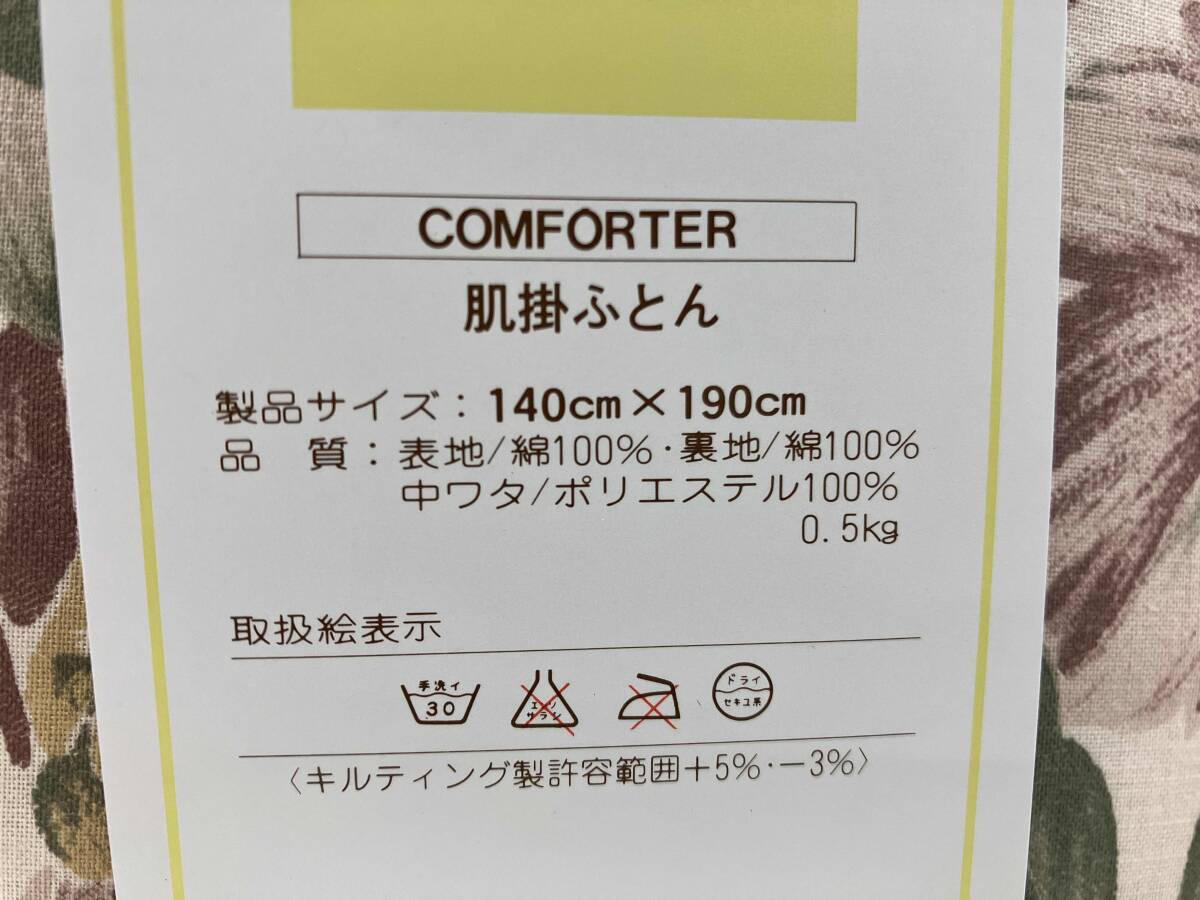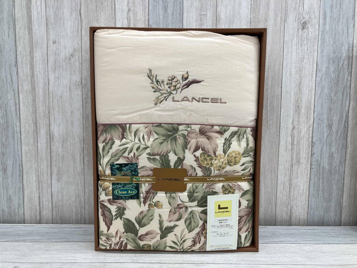 | 画像の物が全てです。 LANCEL 肌かけ布団 シングル 花柄 140×190 です。 箱にテープ跡、凹み、黄ばみがございます。詳しくは写真にてご確認下さい。 綿100% です。 |